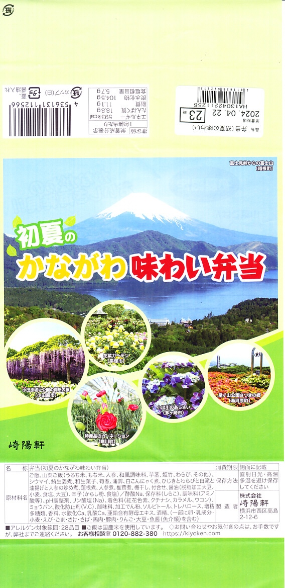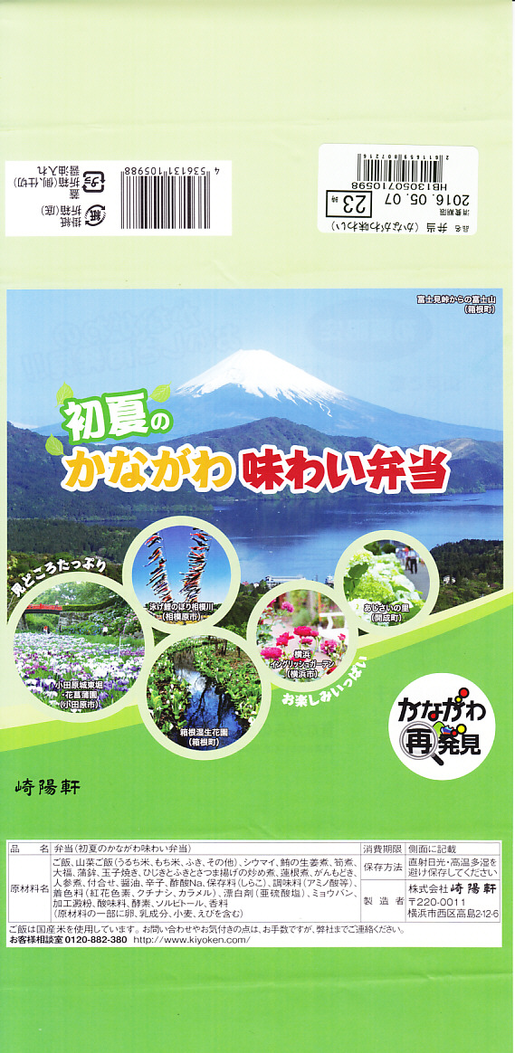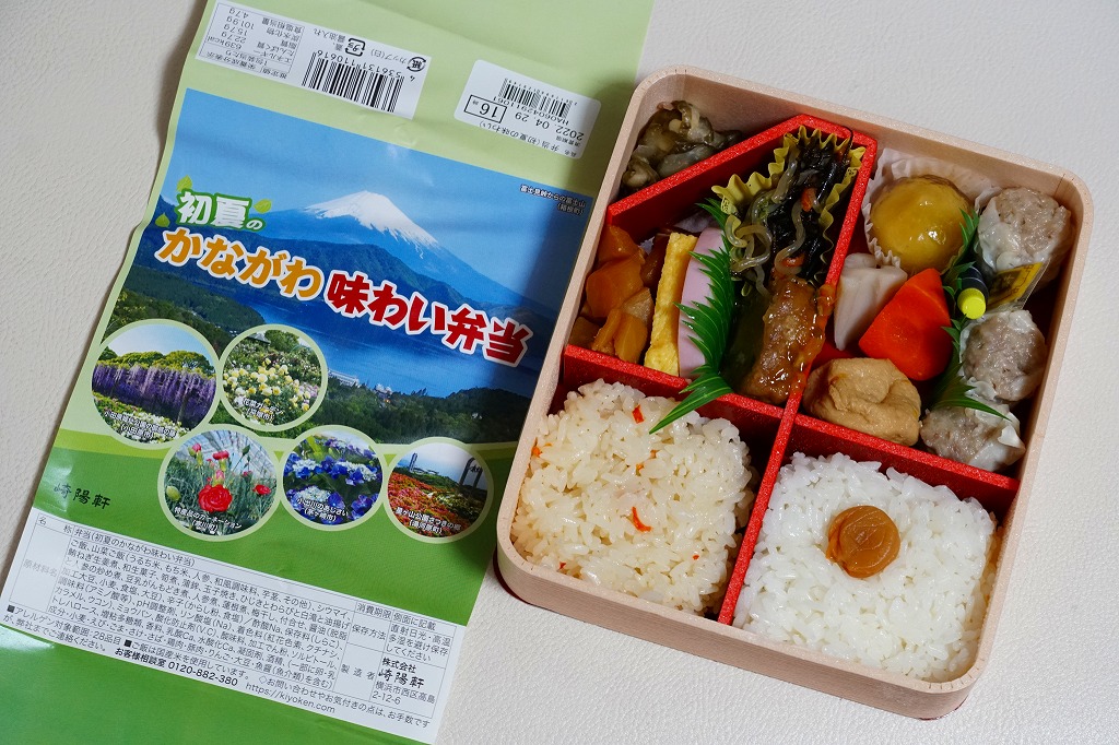 2008(平成20)年に発売された「かながわ味わい弁当」の、2016(平成28)年から出ている「初夏」版の8シーズン目で、2023(令和5)年4月16日から6月15日までの販売で、やはり神奈川県とのタイアップ企画。初夏版の発売当時から変わらない形の、初夏の風景でできている掛紙は、3年連続で据え置かれた。