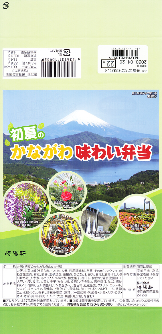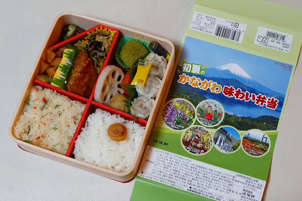 2008(平成20)年に発売された「かながわ味わい弁当」の、2016(平成28)年から出ている「初夏」版の5シーズン目で、2020(令和2)年4月16日から6月15日までの販売で、やはり神奈川県とのタイアップ企画。初夏版の発売当時から変わらない形の、初夏の風景でできている掛紙には、特産品のカーネーション(寒川町)と北條五代まつり(小田原市)が初登場。