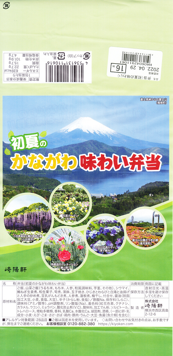 2008(平成20)年に発売された「かながわ味わい弁当」の、2016(平成28)年から出ている「初夏」版の7シーズン目で、2022(令和4)年4月16日から6月15日までの販売で、やはり神奈川県とのタイアップ企画。初夏版の発売当時から変わらない形の、初夏の風景でできている掛紙には、2021年版とまったく同じ写真が使われた。