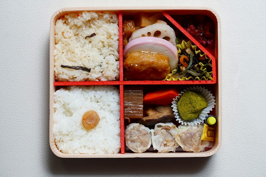 中身は昨初夏とほとんど同じ。三崎産マグロの生姜煮、三浦産芽ひじきと白滝とあさりとわらびの炒め煮、小田原蒲鉾、山菜御飯、小田原産梅干を使う日の丸御飯、きゅうりとみょうがの柴漬け、瀬戸内レモンわらびもち、シウマイ3個などが入る。変える必要がない完成度なのだろう。