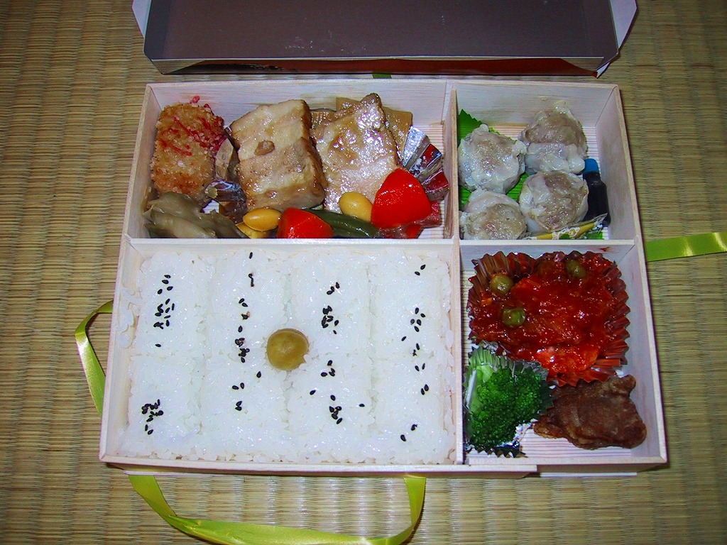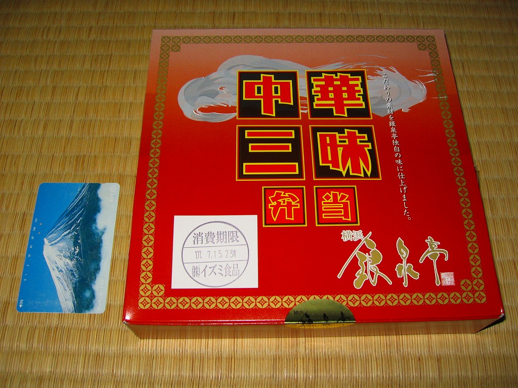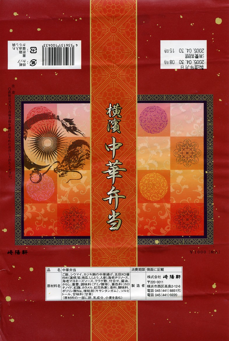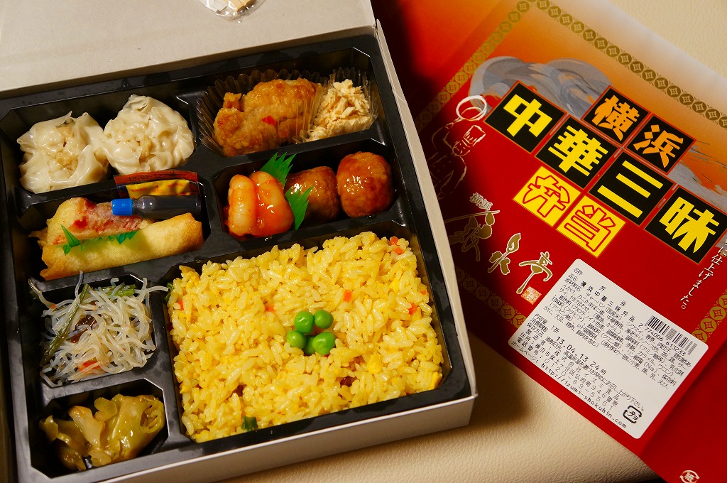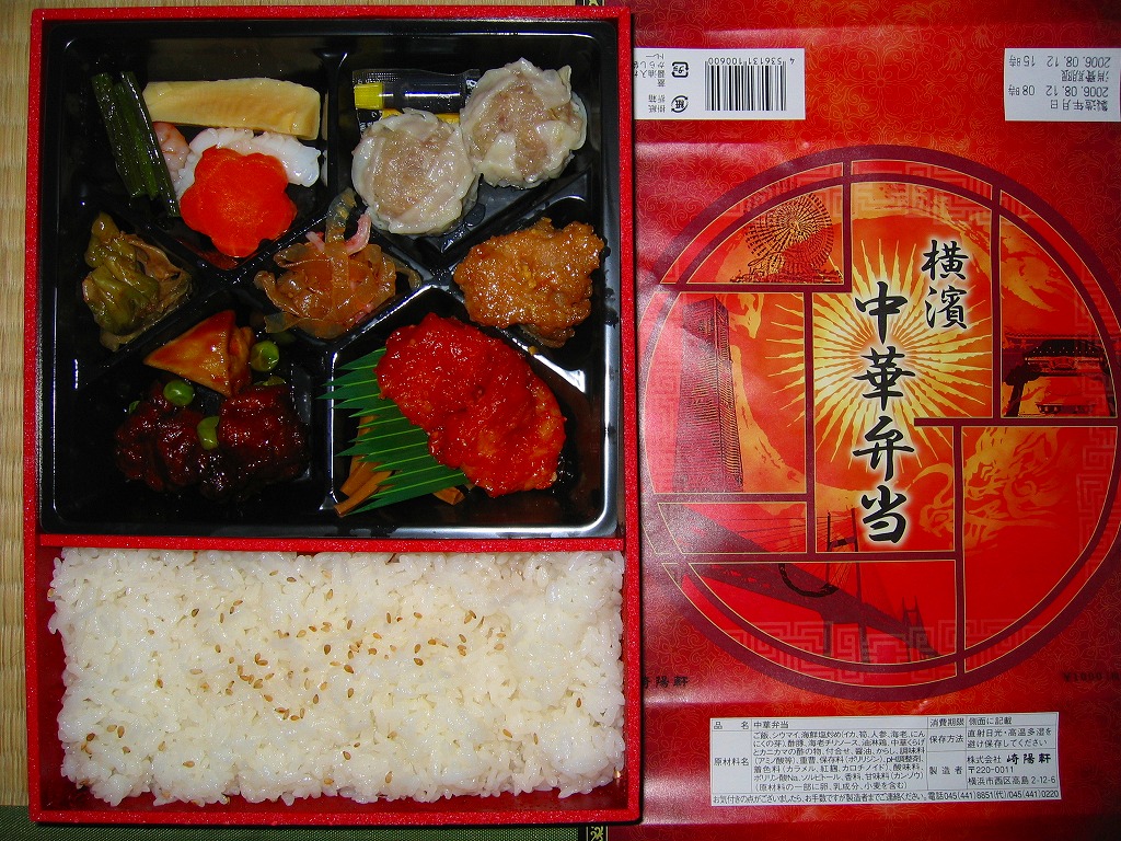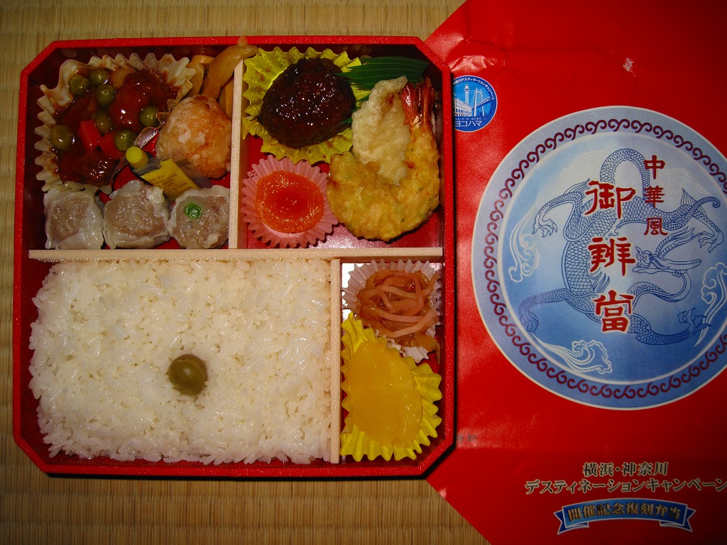 従前の横浜駅弁「横濱中華弁当」を、2005(平成17)年4月15日にリニューアル。黒いふた付き容器に中華風の赤い掛紙を巻いてゴムで留める。中身は胡麻振り御飯に海老マヨネーズにかじきまぐろ中華揚や五目XO醤炒めやザーサイなどにシウマイ3個。以前と比較して見栄えが向上するとともに奇抜さが取れ、より安心して買える商品になったと思う。2006年8月に上記商品へリニューアル。