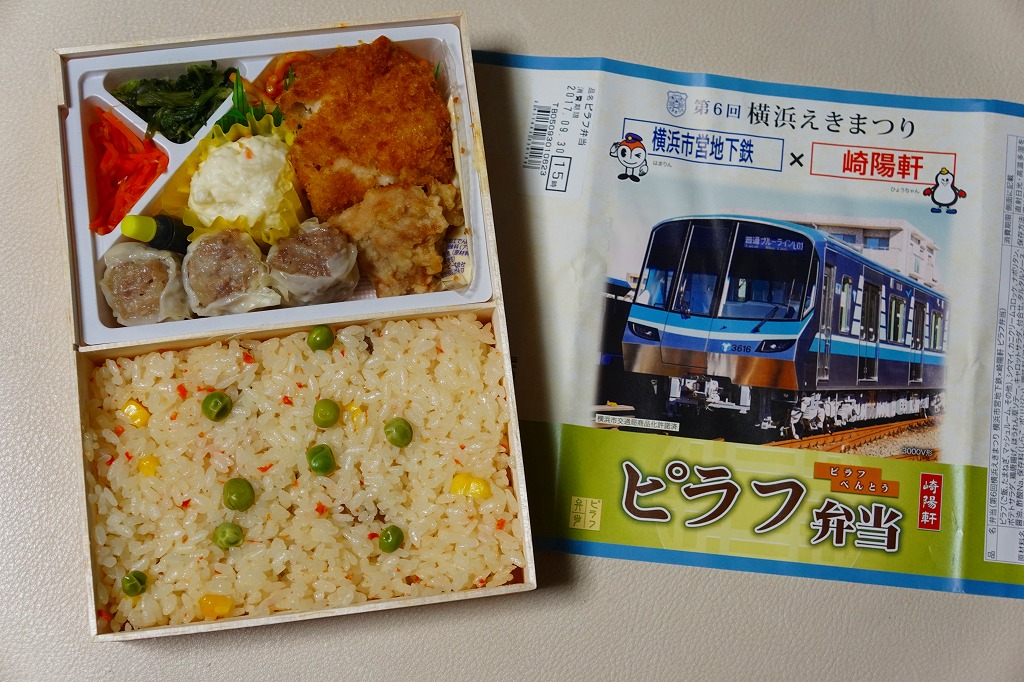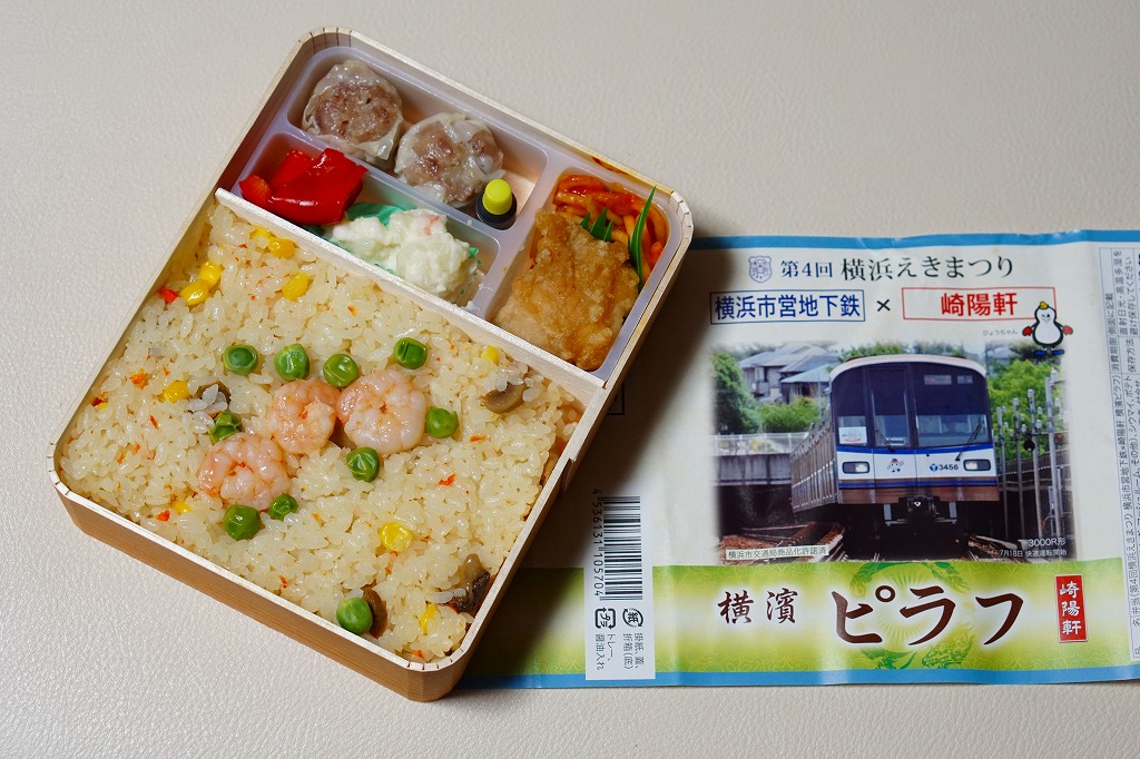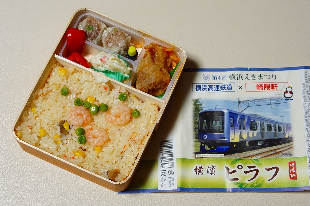 写真の車両はY500系電車。引き続き横浜高速鉄道の電車は、2004(平成16)年2月の開業からこのタイプのみ。掛紙以外は通常の「横濱ピラフ」と同じ。