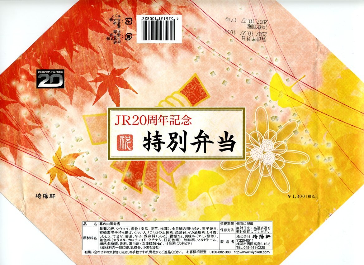 2007(平成19)年10月6日から8日まで東京駅で実施された「第6回東京駅駅弁当祭り 東日本縦断駅弁大会」で販売された横浜駅弁。会場限定商品であった過去2回と異なり今回は初めて、一日100個が横浜駅他8駅でも31日まで売られた。