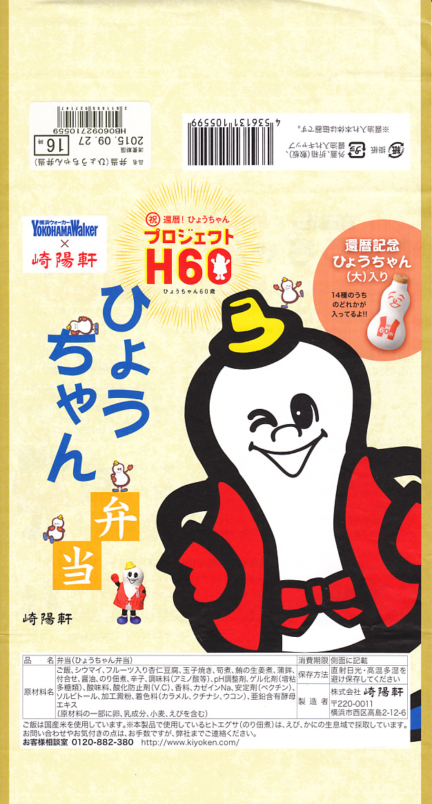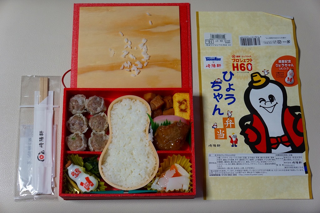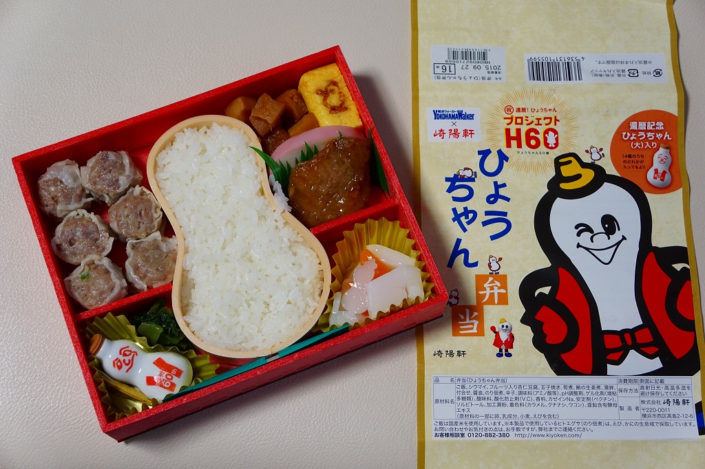 崎陽軒とKADOKAWAのコラボレーション企画、醤油入れ「ひょうちゃん」60周年と隔週刊雑誌「横浜ウォーカー」とのタイアップで、2015年9月24日から30日までに2,100個が販売された記念弁当。