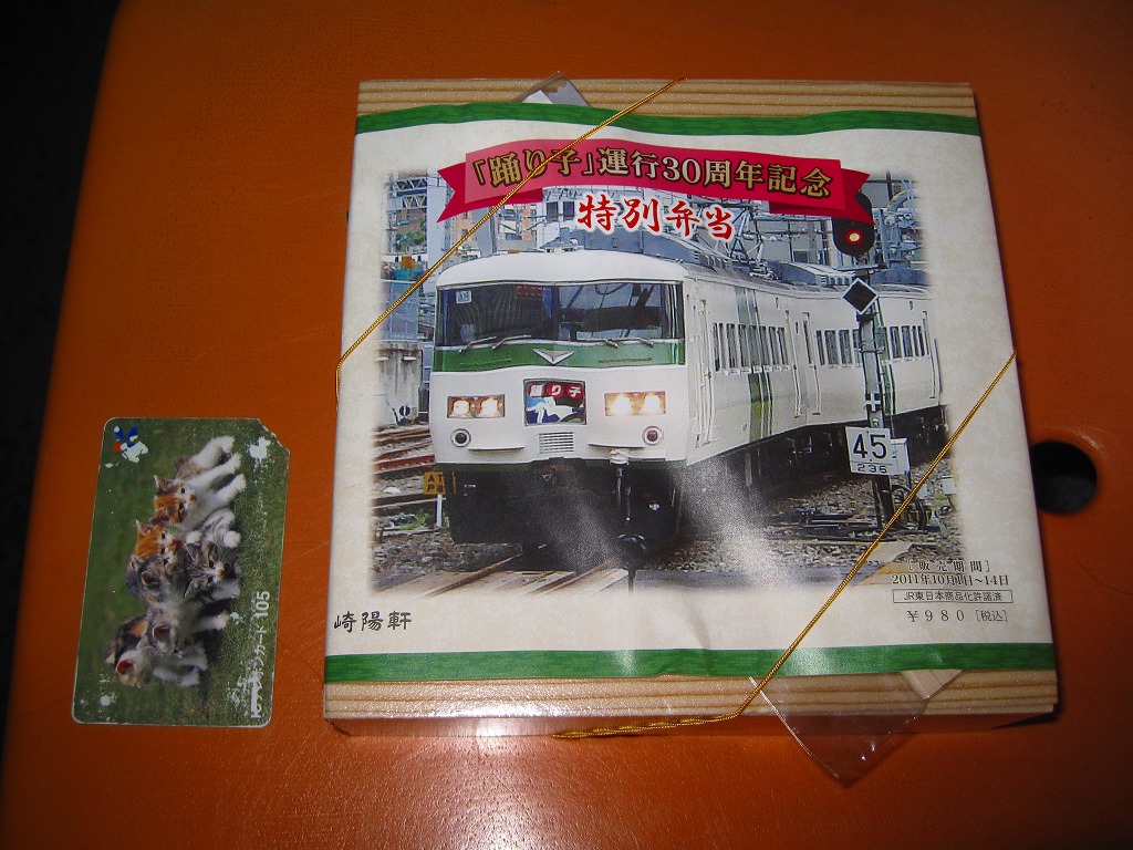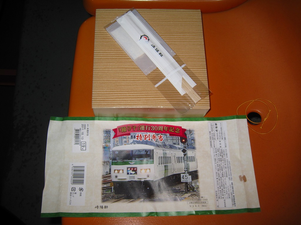 2011(平成23)年10月30日に購入した、横浜駅弁の掛紙。上記の駅弁の、10月15日から31日までの後半バージョンであるが、左を向いていた電車が右を向いただけで、あまり変わり映えがしない。