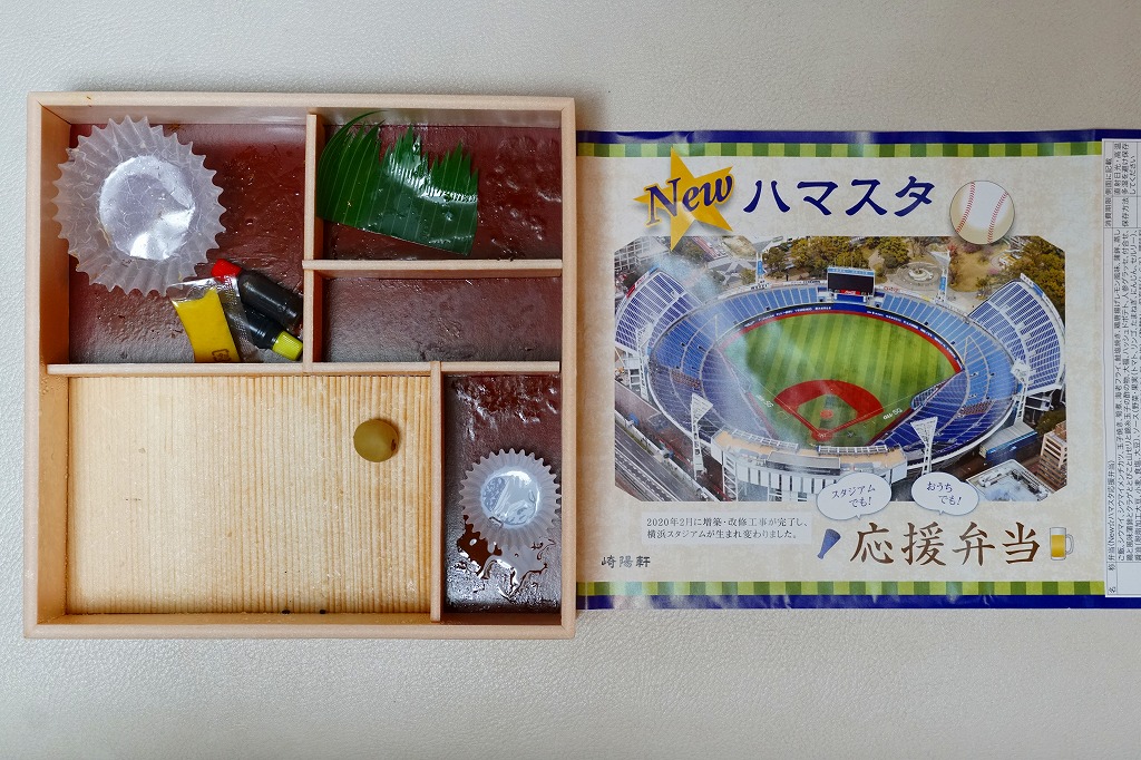 2020(令和2)年のプロ野球は、新型コロナウイルス感染症の流行や政府の感染症対策を受けて、2月29日から3月15日までのオープン戦を無観客試合としたうえで、3月20日のペナントレース開幕が延期された。その後も4度の延期を重ねて6月19日から無観客試合で開幕、7月10日から5000人を上限に観客を入れての試合が開催された。横浜スタジアムでも3月24日の開幕が延期、6月19日から無観客試合で開幕、7月17日から観客を入れての試合を開催。これがなければこの駅弁は、おそらく2月か3月から売られたのではないかと思う。