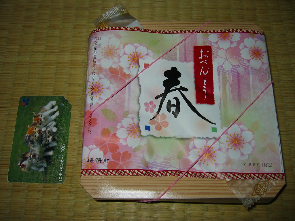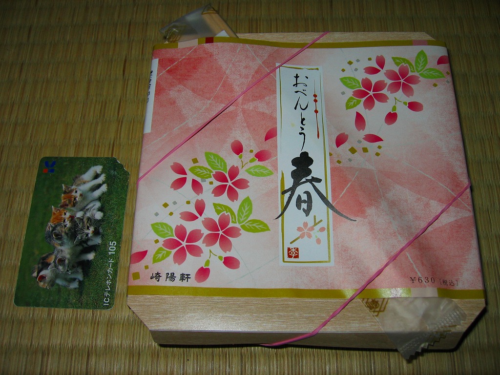 1998(平成10)年に発売された、小柄で安価な横浜駅の春駅弁。これは2006(平成18)年版。毎年同じ商品名で出てくるが、中身と掛紙は毎回が新作となる。今回はタケノコ御飯、マス照焼、鶏南蛮和え、貝柱の華揚げ、里芋やタケノコなどの煮物、玉子焼、シウマイ2個、ミニ大福など。商品の新鮮味こそ薄れてきたが、少量だけど安くて雰囲気の良い季節弁当として引き続き支持されている。