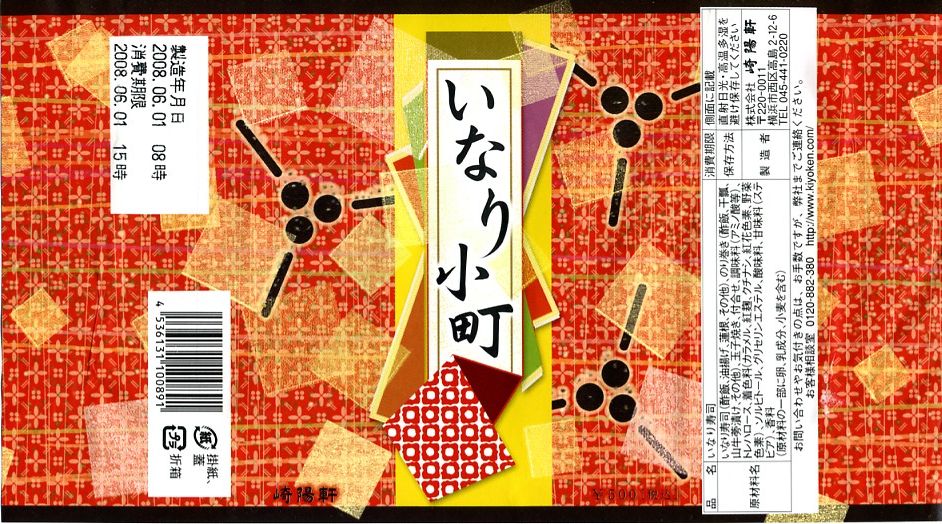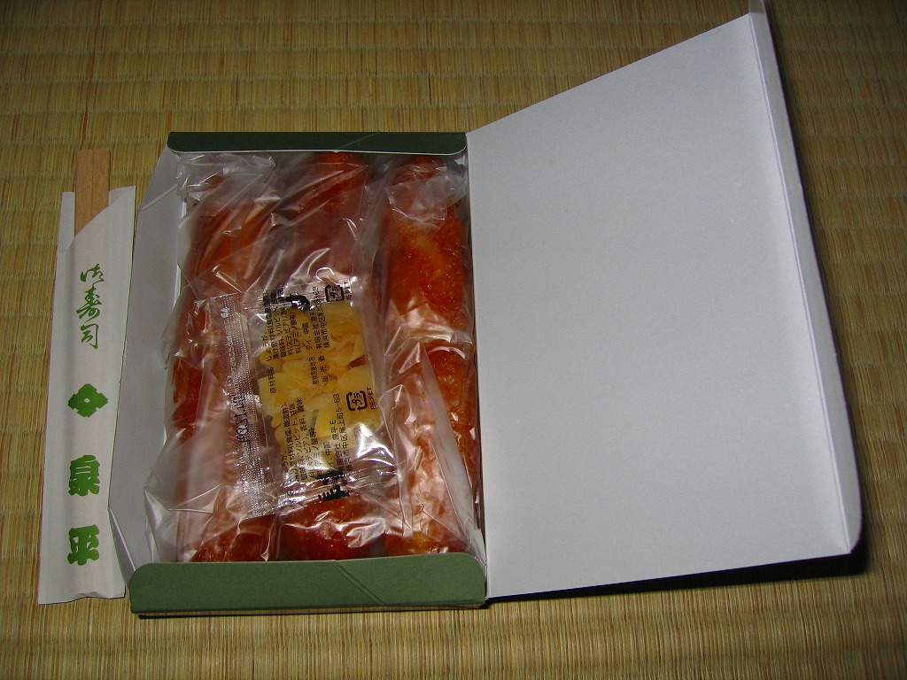上記商品の別パッケージで、横浜駅北口改札内コンコースの弁当売店で購入。食品表示ラベルの商品名「いなりのり弁当」のとおり、泉平名物のいなりずしに加えて、かんぴょう巻きが4個入っている。こうやって地元の名物が駅の改札内で毎日買えるのであれば、駅弁と見なして良いと思う。