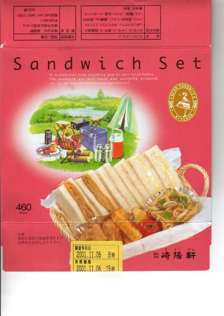 2002(平成14)年4月19日に発売。チーズサンドが2切れ、ハムサンドが2切れ、タマゴサンドが2切れと、ここまでは何の特徴もないが、「シウマイ御弁當」などでお馴染みのタケノコ煮をすりつぶしたものを入れるサンドを1切れ入れて横浜駅弁を主張している。軽い朝飯にぴったり、というより早朝の時間帯を外すとまず入手できない横浜駅の新しいサンドイッチ。現在は売られていない模様。