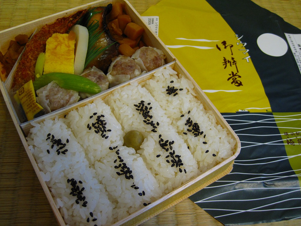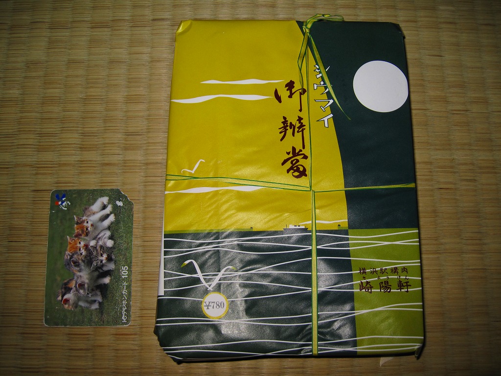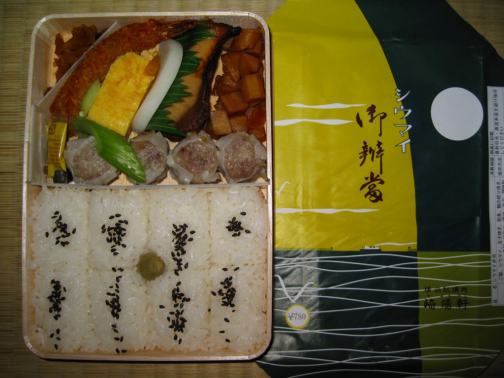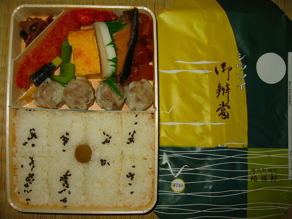下記駅弁の翌年に買えた、復刻版シウマイ弁当。今回はJR横浜支社が管内の駅弁屋4社を集めて、2008(平成20)年1月26・27日に横浜駅西口で実施したイベント「どんどん食べて!!記念・限定駅弁フェア」で買えた。中身は同じだが、2007年3月の現行版シウマイ弁当の価格改訂が反映されている。今後も時々、イベントに出てくるのだろう。