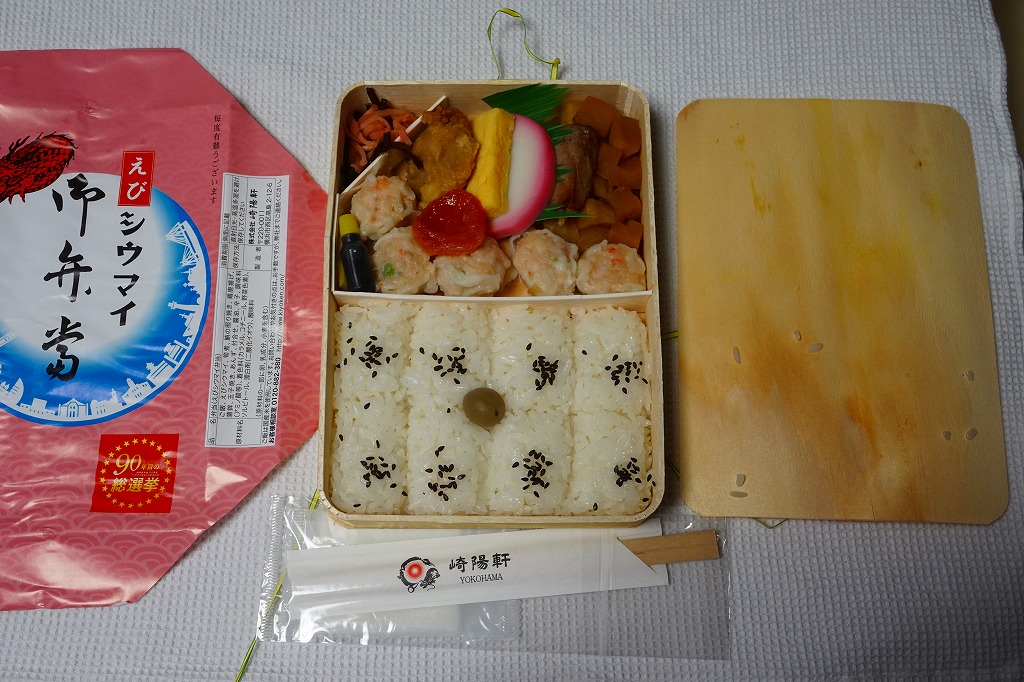 2020(令和2)年4月10日から19日まで、日本鉄道構内営業中央会が駅弁誕生135周年を記念して会員のうち21社が販売する、駅弁の原点であるおにぎりをメインとした記念弁当として、それと同じ容器と中身と価格にほぼ同じ掛紙を使う「おにぎりシウマイ御弁當」が、神奈川エリア20店舗と東京エリア3店舗で700個販売される予定であった。4月2日にそうプレスリリースされ、6日に「新型コロナウイルス感染予防の観点から、販売を延期」され、以後そのままになっている。コロナといえば、船内でコロナが蔓延し横浜港に留め置かれたダイヤモンド・プリンセス号へ、2020年2月12日に差し入れされたシウマイ弁当4,000個も、行方知れずになっている。