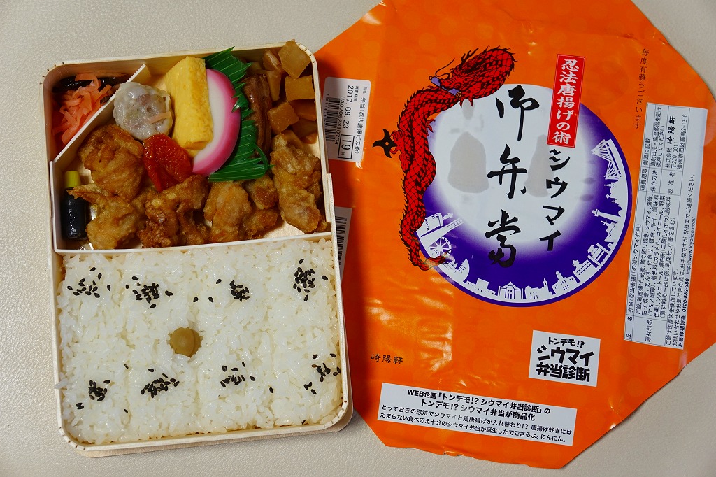 2017(平成29)年9月23・24日に横浜駅エリアで1,000個を販売。前月に崎陽軒公式サイト上で実施したアンケート企画「トンデモ!?シウマイ弁当」の結果に基づき、これと「忍法唐揚げの術シウマイ弁当」を、2日間限定で商品化した。