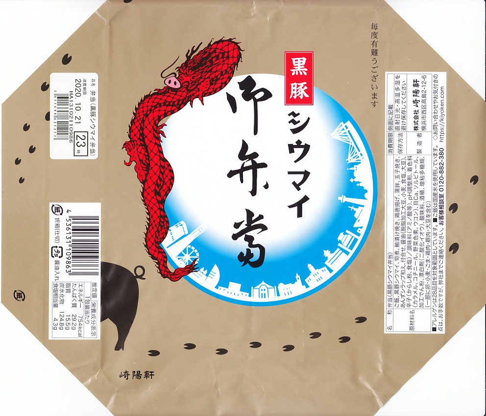 崎陽軒の「次の主役は誰だ!2020 シウマイ弁当リレー企画」による商品の第3弾として、2020(令和2)年10月21日から31日まで販売。普段の横浜駅弁のシウマイ弁当について、シウマイ5個を同じ大きさの「黒豚シウマイ」に差し替えて、掛紙の絵柄を少し変えて販売した。これは初めての内容。やはり豚肉を使う通常のシウマイとの大きな違いは、胡椒を混ぜるか否か。