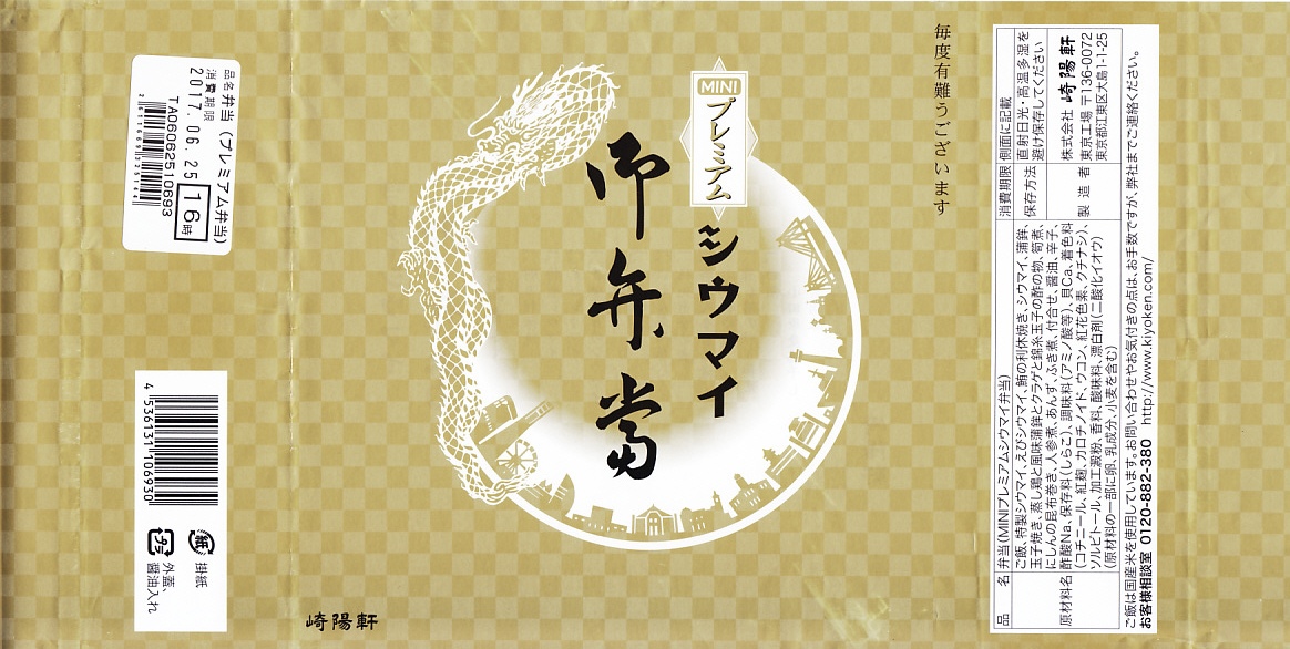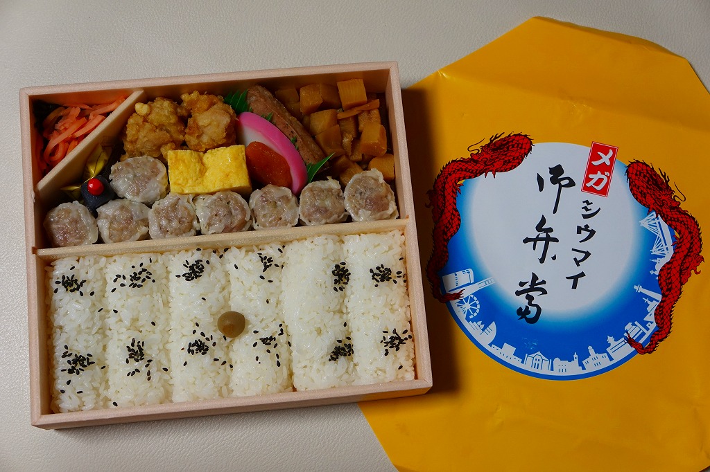 崎陽軒の横浜工場の弁当製造ラインの新設記念で、2017(平成29)年6月23日から7月22日まで、「メガシウマイ御弁當」とともに販売。その名のとおり、シウマイ弁当の高級版。