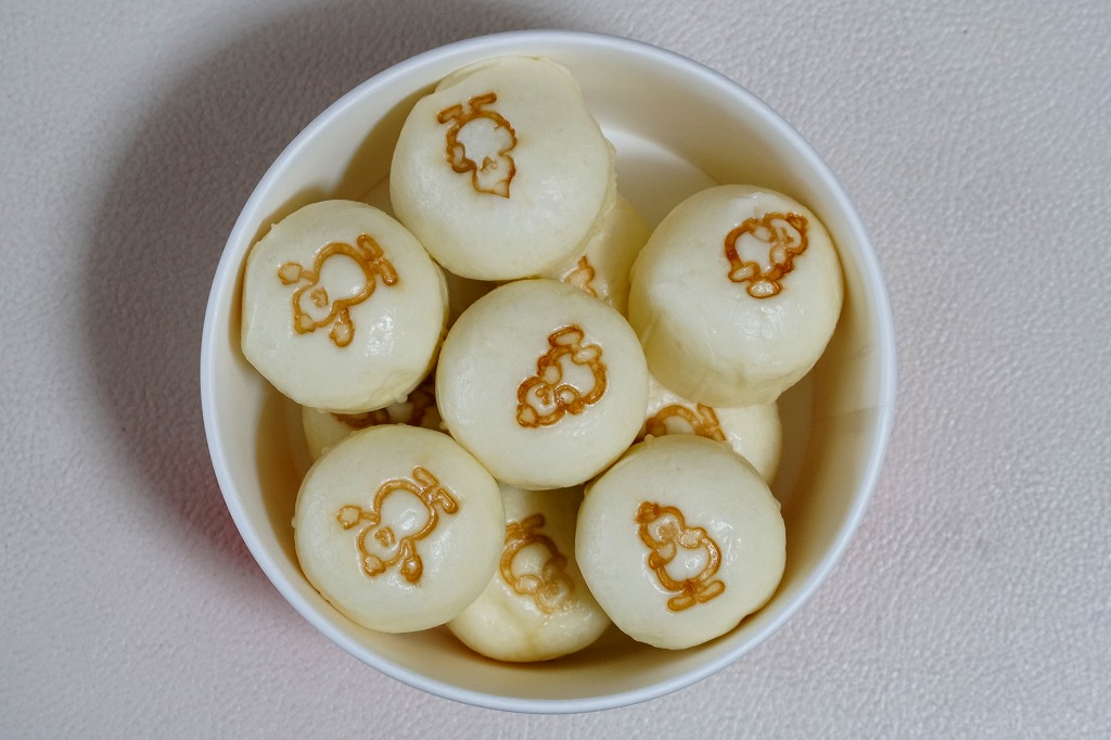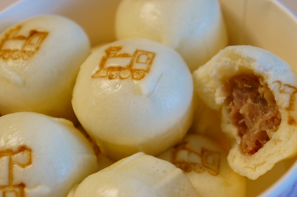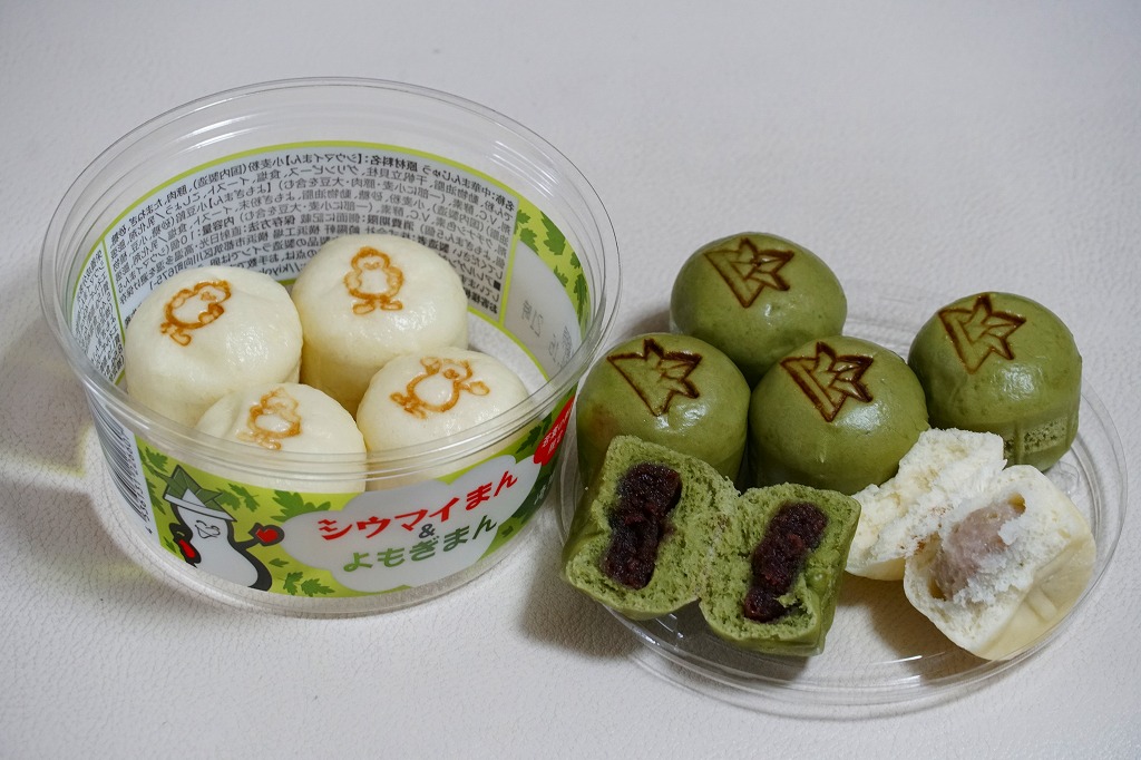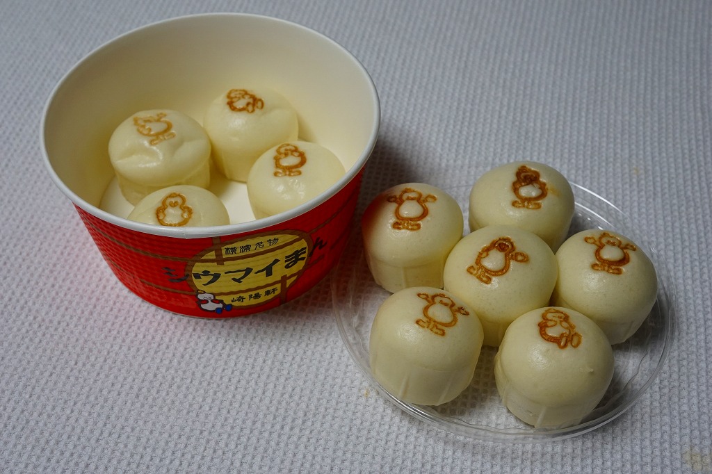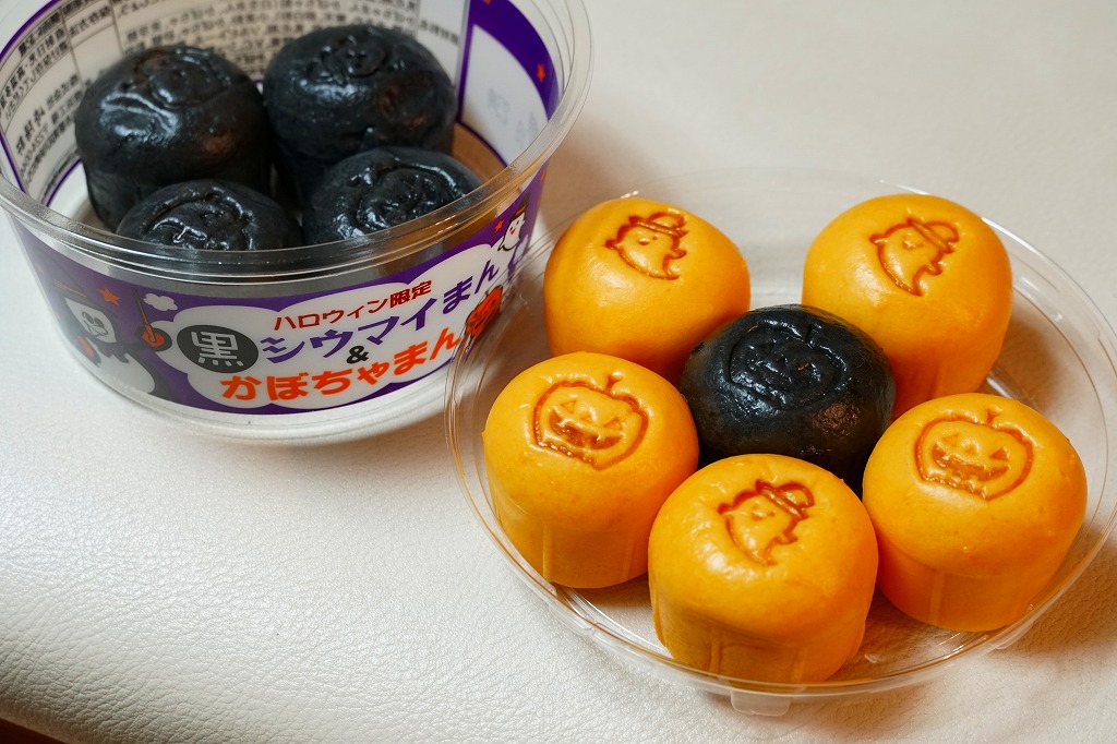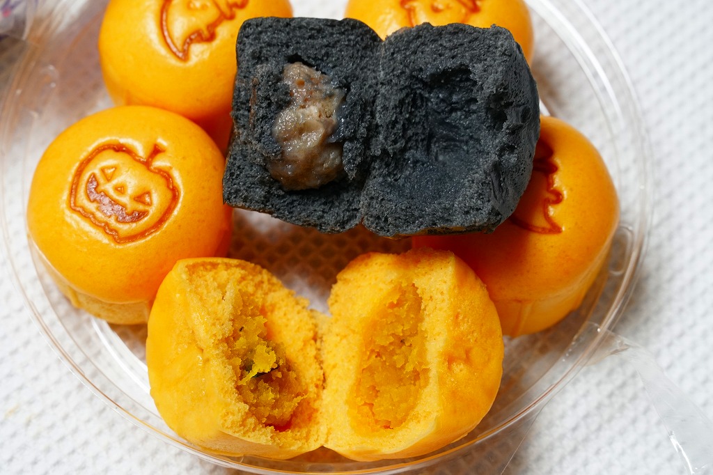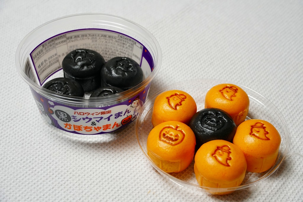 2018(平成30)年10月1日に発売、30日まで販売。翌2019(令和元)年も10月4日から31日まで販売された、ハロウィン限定シウマイまん。通常版とだいたい同じ大きさを持つ透明なプラ製カップに、黒色と橙色のプチ饅頭が5個ずつ。黒はシウマイまんで、橙はそのシウマイをカボチャ餡に替えたもの。お菓子でもおかずでもないこの味がどう評価されたか気になる。価格は2018年の発売時で550円、2022年は560円、2023年から570円、2025年は600円。