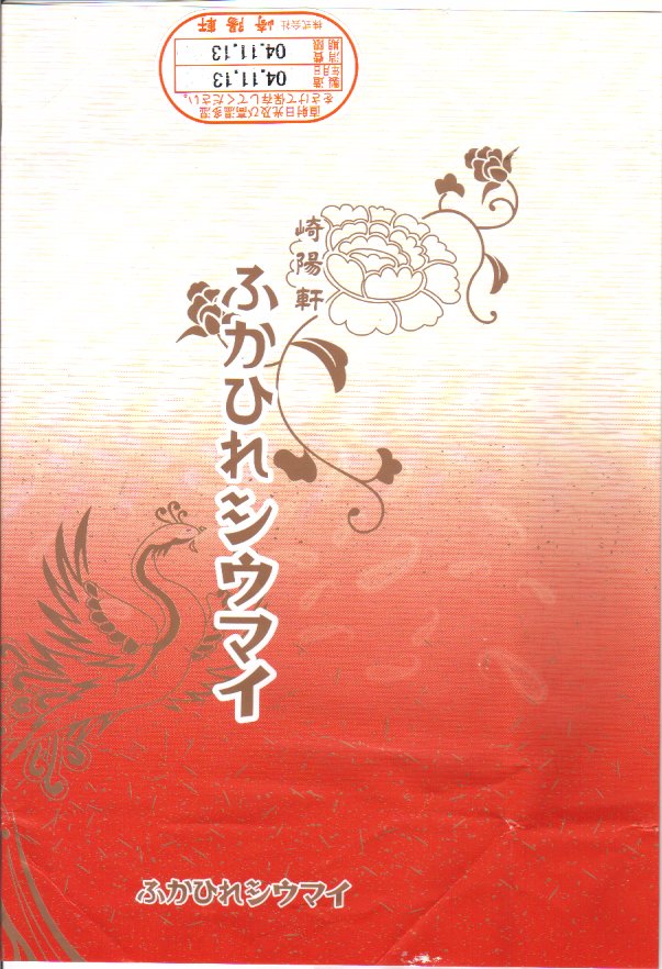 2004(平成16)年10月15日に発売、2005年1月31日まで一日100個限定で発売された、期間限定の特製シウマイ。経木枠の長方形の容器に白地花柄の紙のふたをかけ、朱色のグラデーションに金文字で商品名などを記した包装紙で包む。中身はフカヒレを重量の2割も混ぜたという特製シウマイが十個。味が淡泊なので飯のおかずや酒のつまみには向かないが、多量に混入したフカヒレの風味や食感を十分に楽しめたので、一個あたり160円という価格に割高感はなかった。