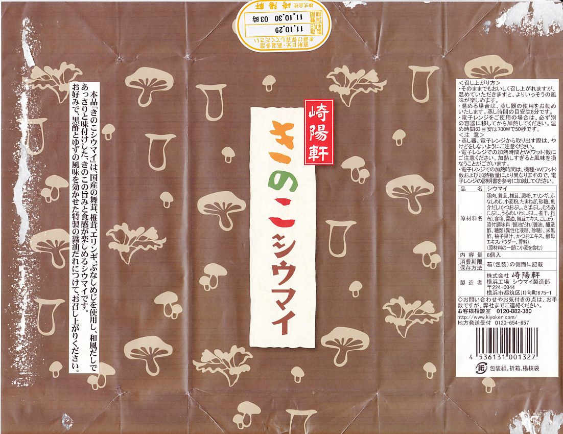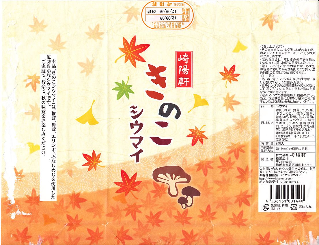 しいたけ、ぶなしめじ、エリンギ、舞茸、ヒラタケと豚肉を混ぜ合わせた、中華の点心としては通常サイズ、崎陽軒の横浜駅弁としては大きいサイズのシウマイを、木目柄の紙箱に6個収め、醤油と辛子を添える。前年の表記「4種の国産きのこ(舞茸、椎茸、エリンギ、ぶなしめじ)を使用した」が、この年は「5種のきのこ(椎茸、ぶなしめじ、エリンギ、舞茸、平茸)を使用した」に変化したが、味の変化は感じられず、こちらも10年連続で据え置かれた。