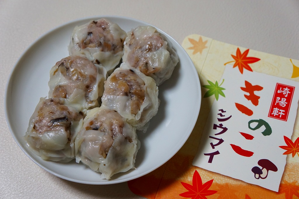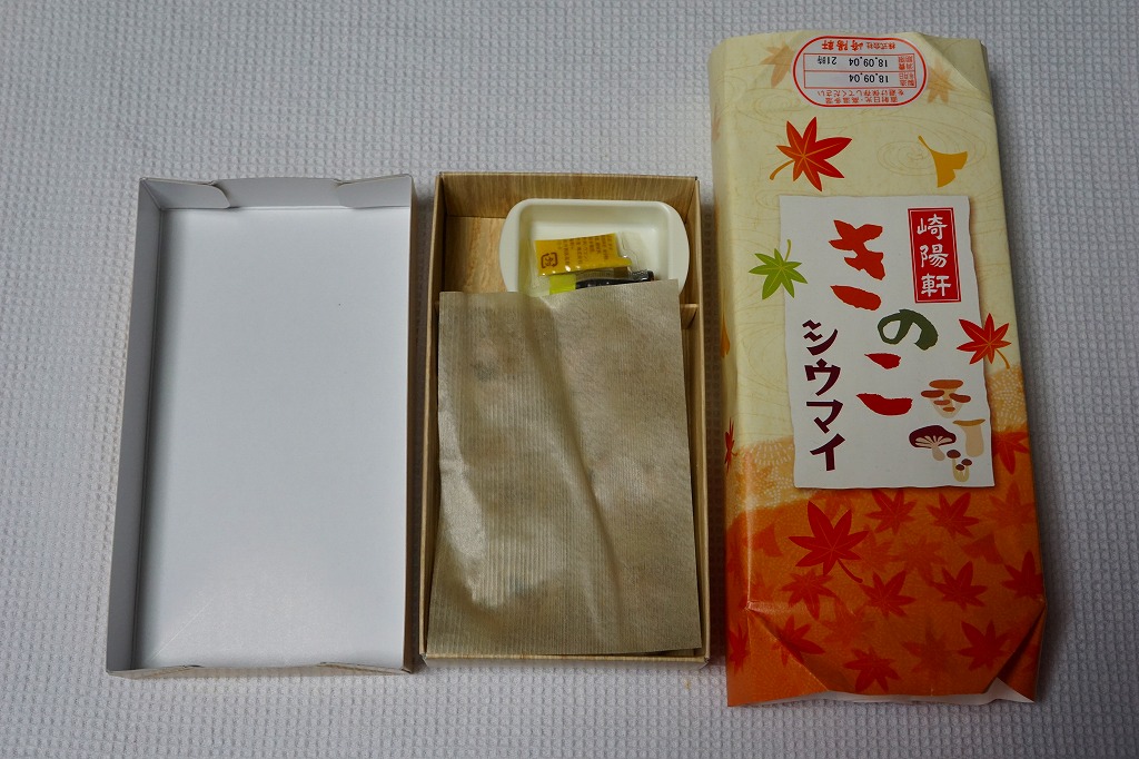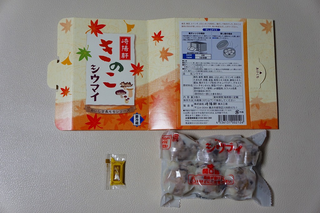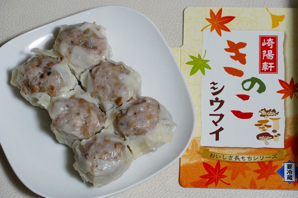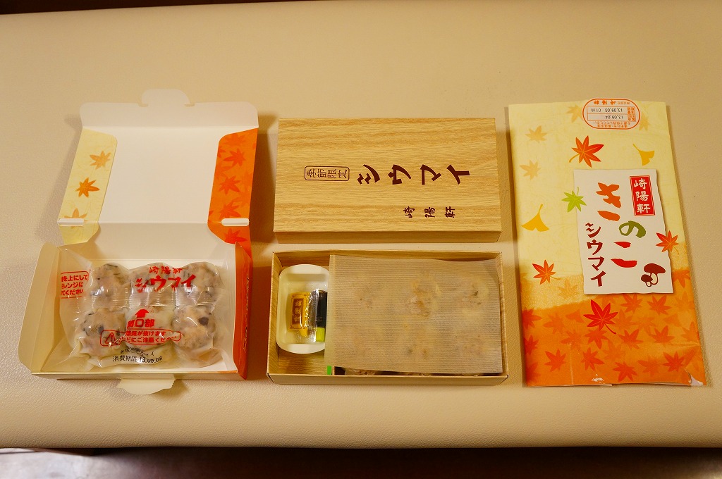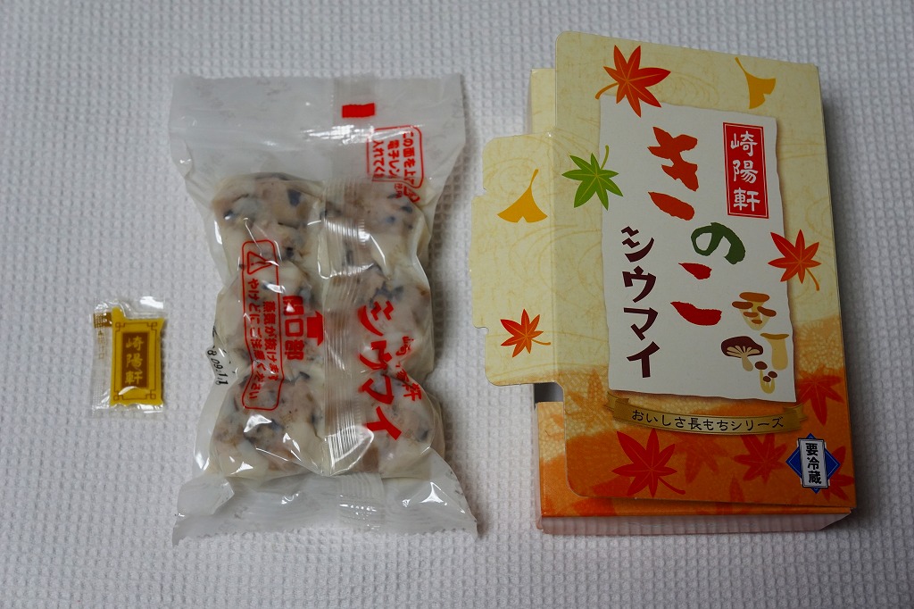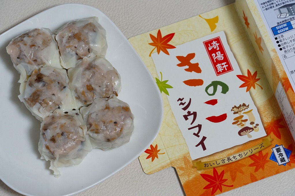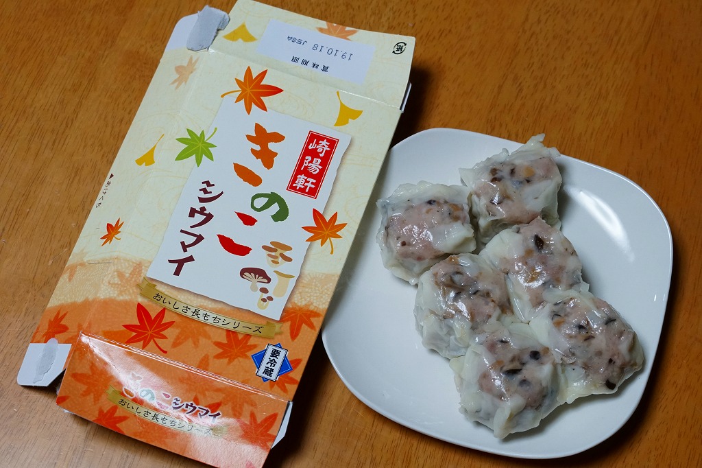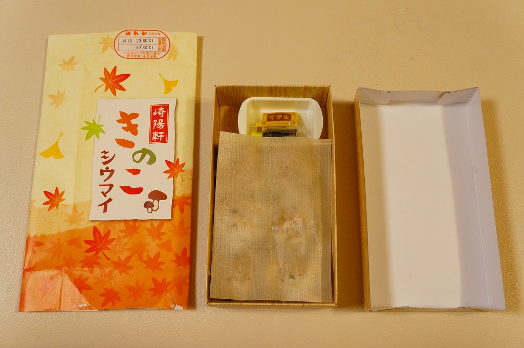 2003(平成15)年に発売された、季節の特製シウマイの秋版。今回も「きのこシウマイ」の、常温タイプとこの「おいしさ長もちシリーズ」の両方を、2024(令和6)年9月1日から11月30日まで併売。折箱も包装紙も中身も風味も前年と同じで、実質的に12年連続で据え置かれた。しいたけ、ぶなしめじ、エリンギ、舞茸、ヒラタケと豚肉を混ぜ合わせた、中華の点心としては通常サイズ、崎陽軒の横浜駅弁としては大きいサイズのシウマイを、樹脂の袋で押し潰して箱に詰め、辛子を添える。味も12年連続で据え置きか。価格は20円上がった。