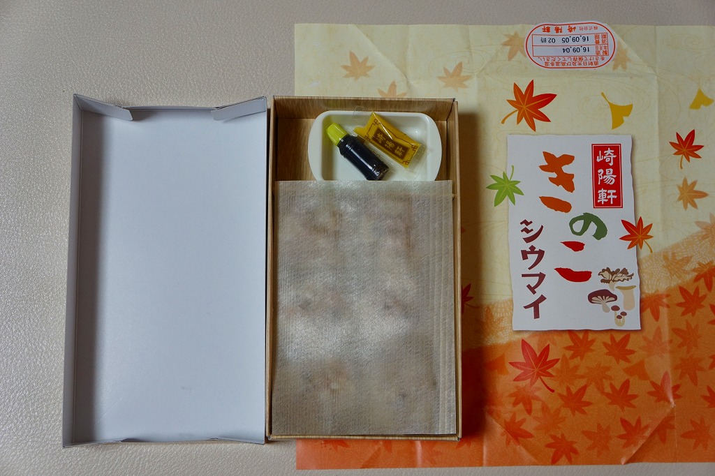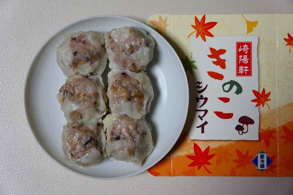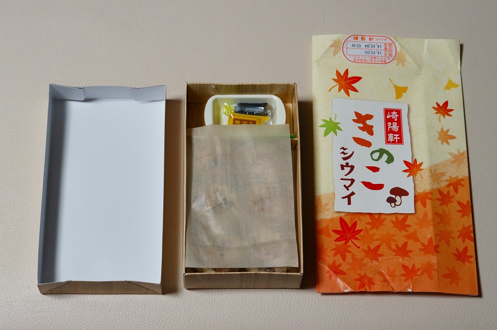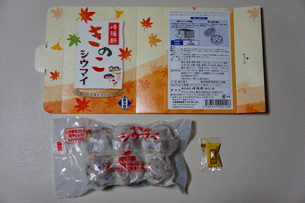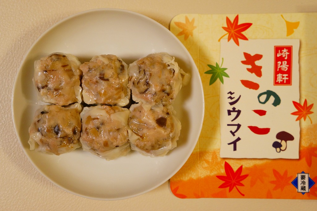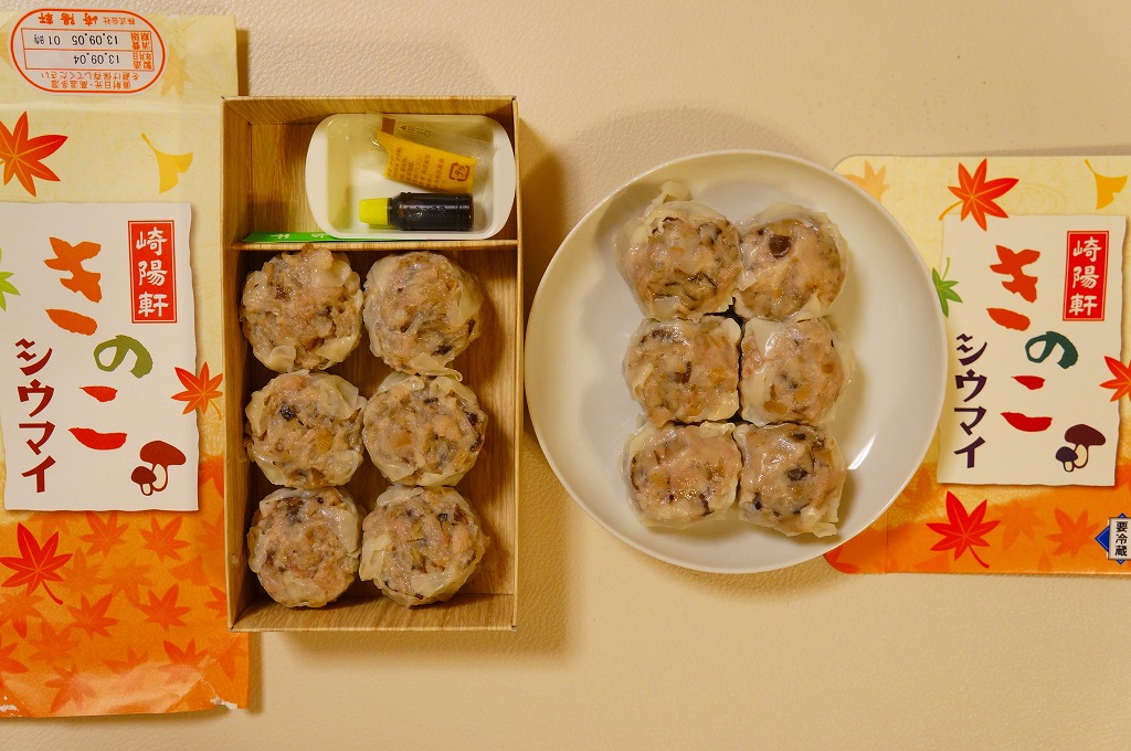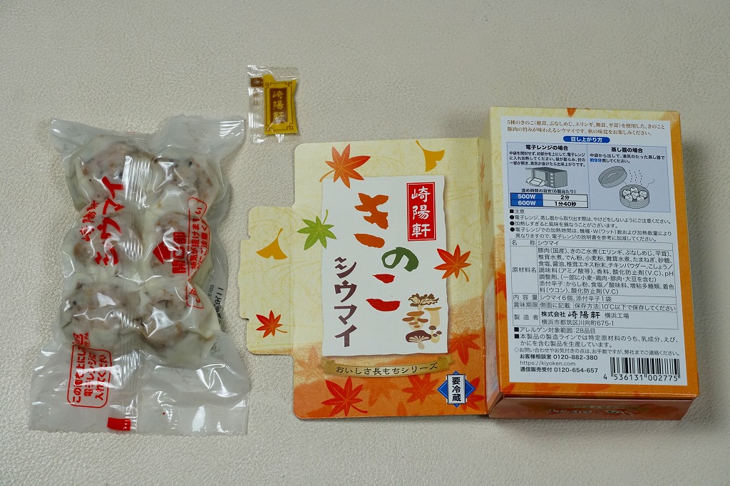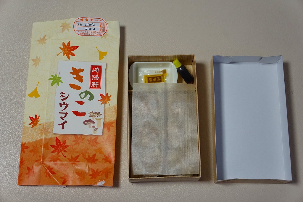 2003(平成15)年に発売された、季節の特製シウマイの秋版。今回も「きのこシウマイ」の、常温タイプとこの「おいしさ長もちシリーズ」の両方を、2024(令和6)年9月1日から11月30日まで併売。折箱も包装紙も中身も風味も前年と同じで、実質的に12年連続で据え置かれた。しいたけ、ぶなしめじ、エリンギ、舞茸、ヒラタケと豚肉を混ぜ合わせた、中華の点心としては通常サイズ、崎陽軒の横浜駅弁としては大きいサイズのシウマイを、樹脂の袋で押し潰して箱に詰め、辛子を添える。味も12年連続で据え置きか。価格は20円上がった。