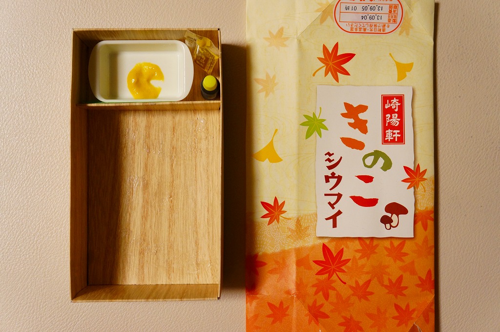キノコ嫌いは避けたほうが良さそう。11月末までの発売期間が好評のため延長された。ところで、崎陽軒の高級シウマイは包装紙と容器が底で多量の糊により完全に接着しているため、いくら丁寧に扱っても破れなしにはがすのは不可能、掛紙コレクター泣かせの商品である。