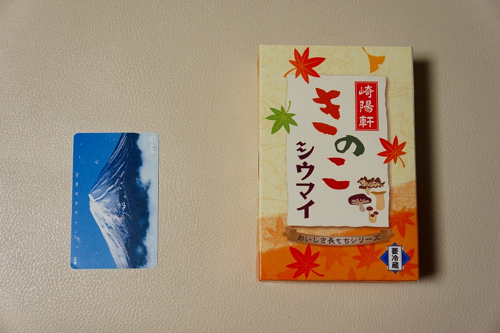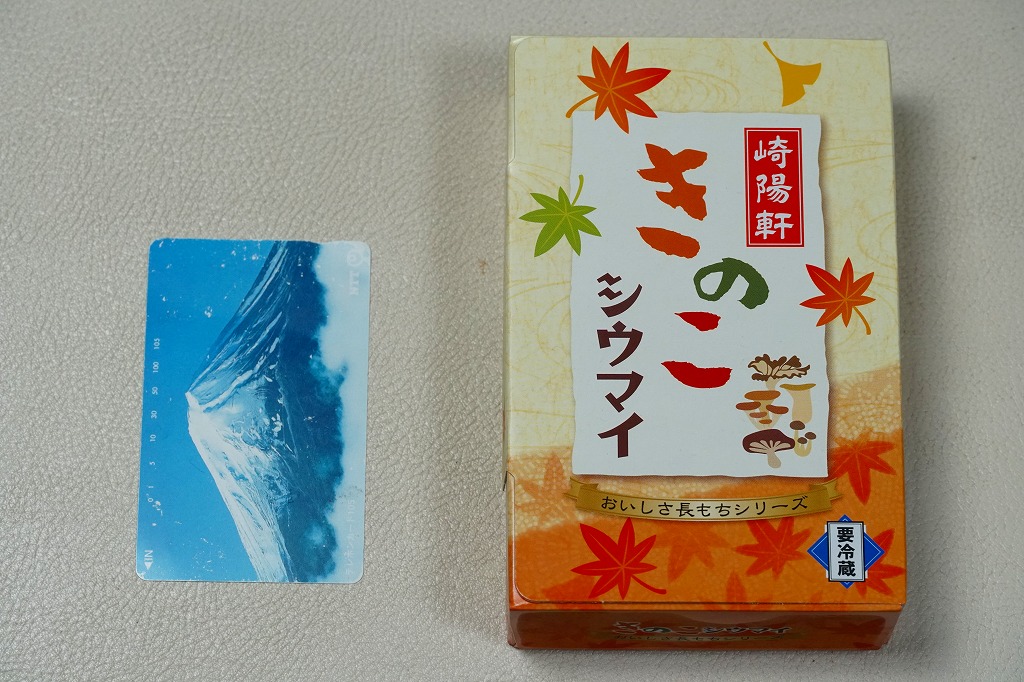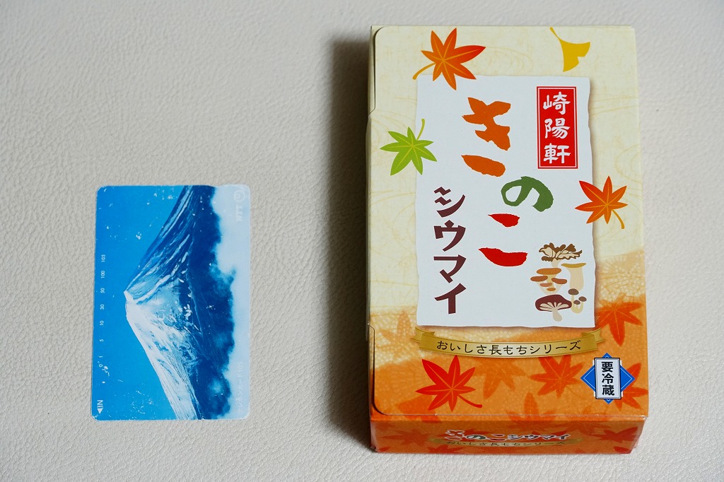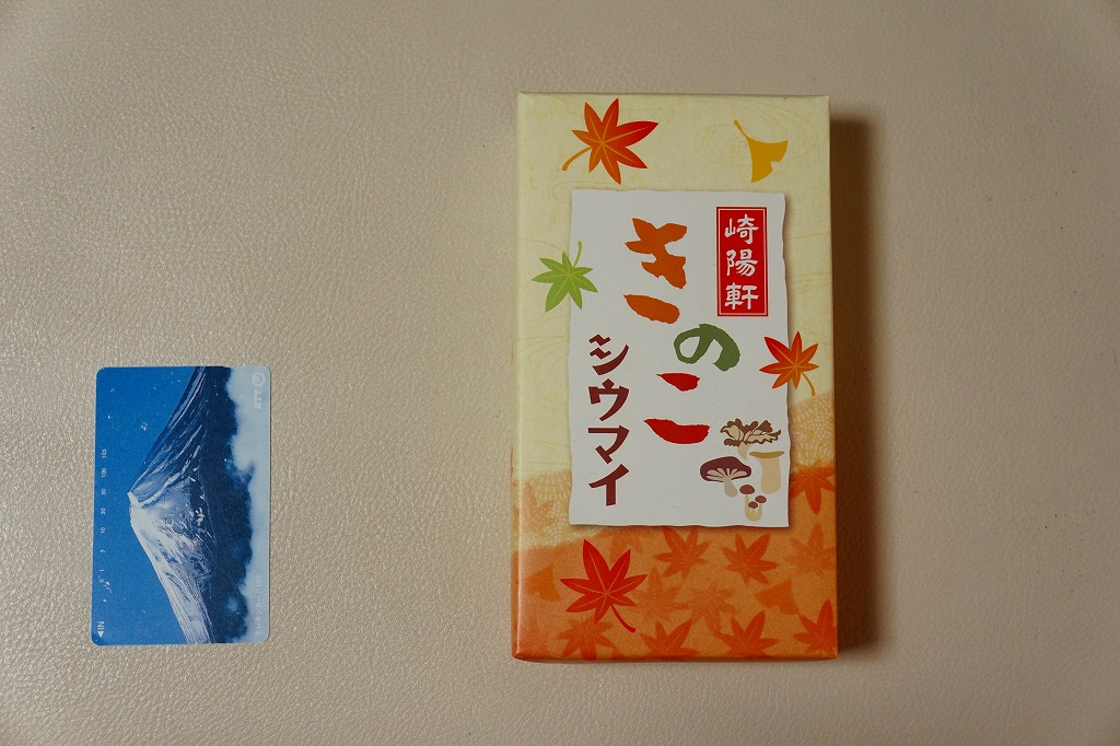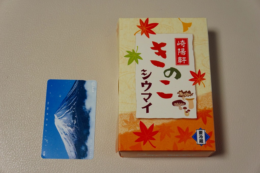 2003(平成15)年に発売された、季節の特製シウマイの秋版。今回も「きのこシウマイ」の、常温タイプとこの「おいしさ長もちシリーズ」の両方を、2025(令和7)年9月1日から11月30日まで併売。折箱も包装紙も中身も風味も前年と同じで、実質的に13年連続で据え置かれた。しいたけ、ぶなしめじ、エリンギ、舞茸、ヒラタケと豚肉を混ぜ合わせた、中華の点心としては通常サイズ、崎陽軒の横浜駅弁としては大きいサイズのシウマイを、樹脂の袋で押し潰して箱に詰め、辛子を添える。味も13年連続で据え置きか。価格も据え置かれた。