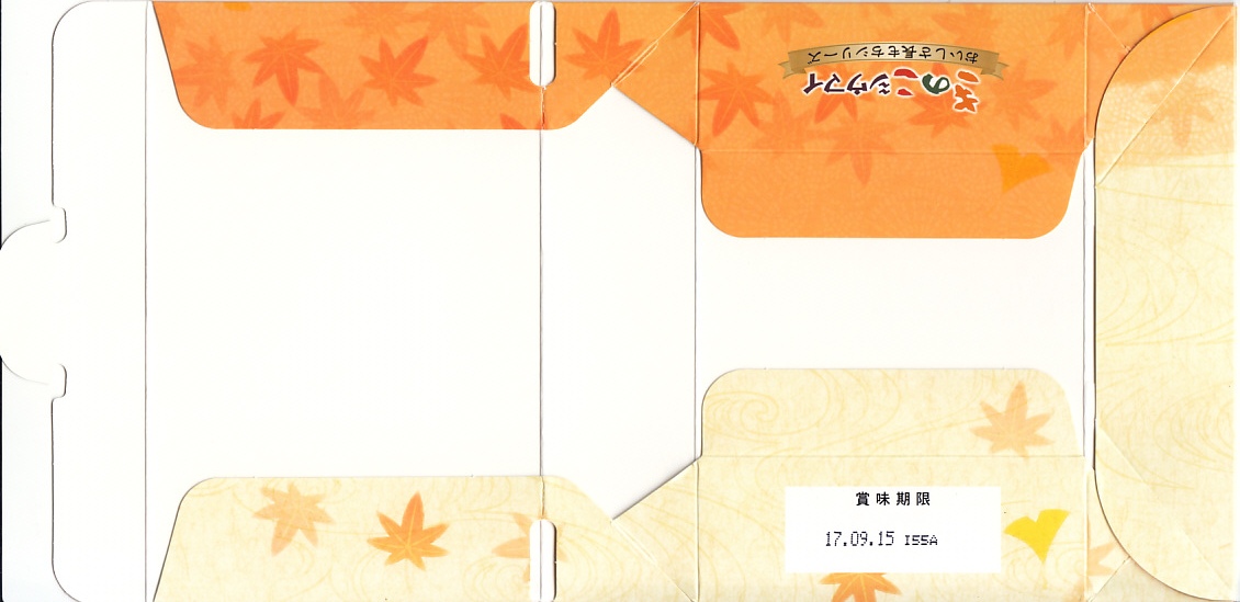 2016(平成28)年9月1日から11月30日までの販売の、秋の特製シウマイ。今回も引き続き、常温タイプと「おいしさ長もちシリーズ」の販売で、こちらは前者の常温タイプ。包装紙も紙箱も中身も味も、4年連続で据え置かれた。この年の9月1日の崎陽軒の弁当類値上げにより、価格は今回から10円アップの650円。