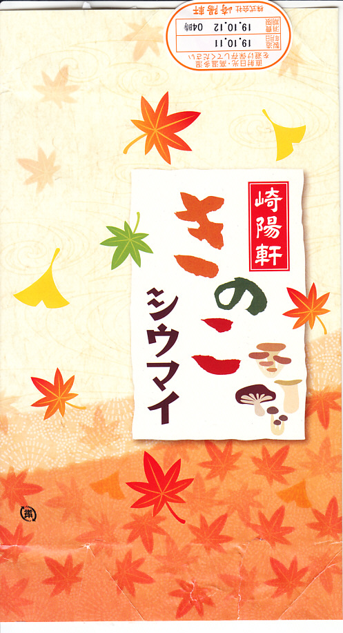 2003(平成15)年10月3日から12月20日頃まで販売された、季節限定の特製シウマイの第二弾。なお、第一弾は2003年7月27日から9月30日まで販売された「涼味いかシウマイ(550円)」。容器を開封しても感じないが、食べると舞茸や椎茸の味と食感と香りが一杯に広がるシウマイが6個、醤油入れ「ひょうちゃん」とともに入っている。