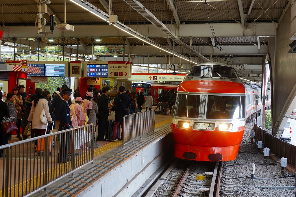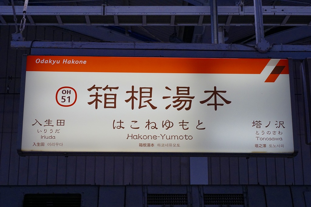 新宿から小田急特急ロマンスカーで約1時間半。箱根観光の玄関口のひとつであり、1200年以上の歴史を持つ温泉郷であり、全国有数の登山電車の乗り場でもあり、鉄道も道路も一年中混んでいる。駅弁はホーム上のキヨスク型売店と、2階改札外の土産物店で、各社のものが売られる。1919(大正8)年6月1日開業、神奈川県足柄下郡箱根町湯本。