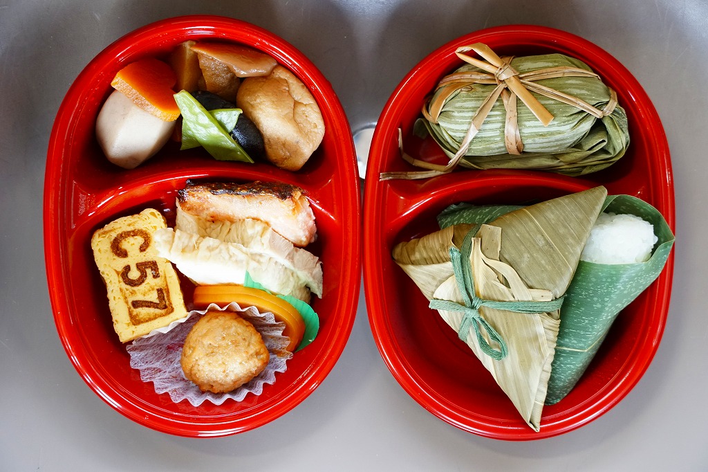 楕円形のプラ容器をふたつ重ねて詰めた、SLばんえつ物語の公式キャラクター「オコジロウ」「オコミ」を描いた紙箱を、やはり両者を描いたシールを貼る市販の紙袋に収める。中身は下段が塩おにぎりと笹巻おこわと笹だんご、上段がおかずで、お麩や椎茸などの煮物、津川の麒麟山酒粕を使う鮭の粕漬け、もちぶたの肉団子、越の鶏の塩焼き、大根味噌漬。かわいい名前と絵柄とは対照的な、渋い内容で新潟を詰めた幕の内弁当。調製元は新津駅の駅弁屋でも、新津駅弁のいずれにも似ていない。価格は2012年の発売時で1,200円、2014年時点で1,240円、2016年時点で1,300円、2023年時点で1,400円。