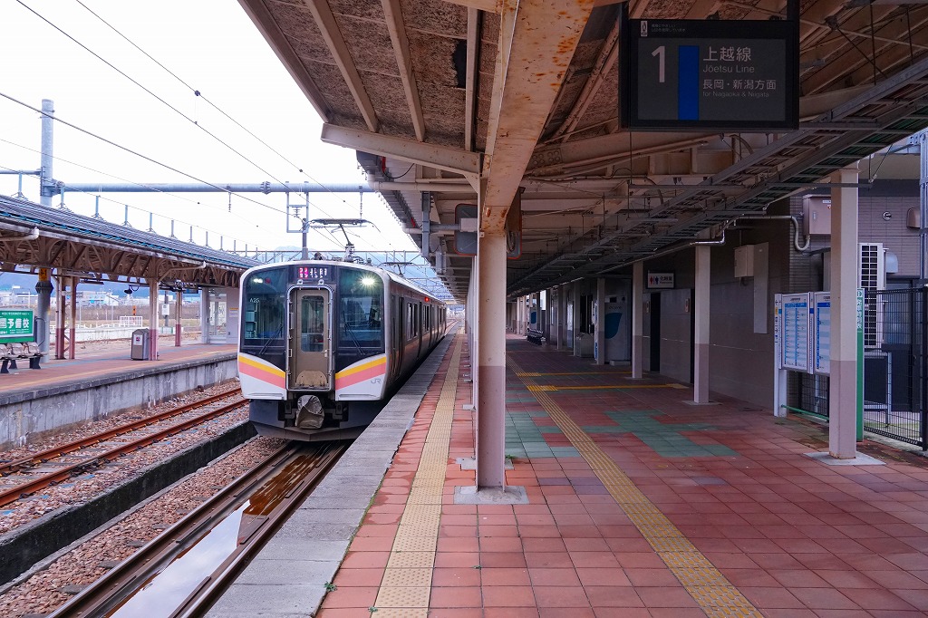 長岡駅から上越線の普通列車で30分強。魚沼市は新潟県中部の中越地方の南端で、2004年11月に2町4村が合併してできた市。市域の大部分が森林であるほか、最高級の銘柄米である魚沼産コシヒカリを名乗れる地域の一部である。駅弁は1943年頃から1990年頃まで売られた。1923(大正12)年9月1日開業、新潟県魚沼市四日町。