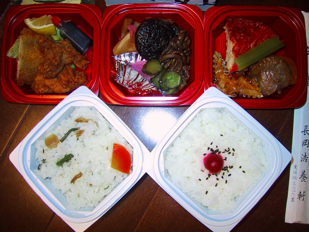 パッケージにひっそり記される長岡赤飯とは、おこわのこと。由来は定かでないが全国でも新潟県内でも長岡でだけは、おこわを赤飯と呼ぶらしい。醤油味が一般的だが、市内のスーパーなどでは栗やキノコなど、他地域のおこわのバリエーションがある。長岡市民は他地域の赤飯の赤さを不気味に感じるとか。この駅弁は、2009年6月の調製元の事業停止により失われた。