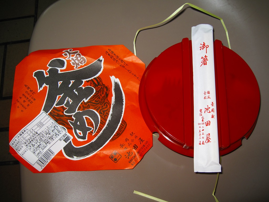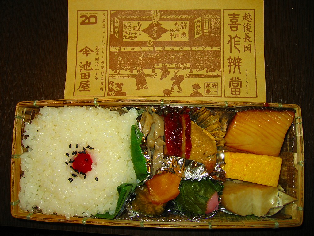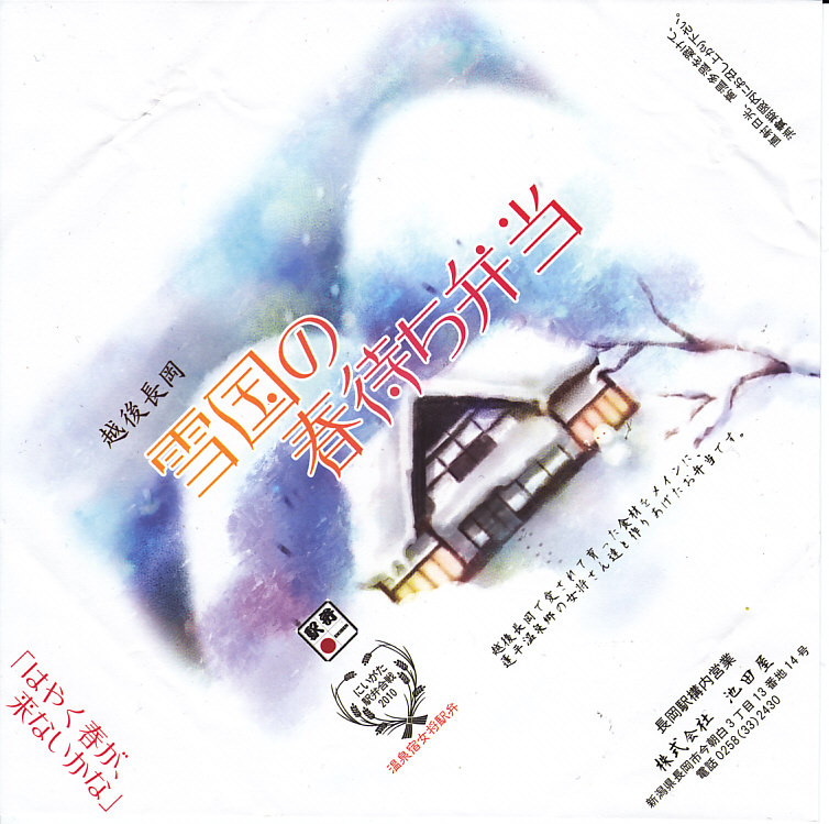 東京駅から新幹線で約100分。長岡市は新潟県の中央に位置する、人口約26万人の城下町。かつては信濃川の水運で、今は鉄道や国道や高速道路が分岐する交通の要衝は、明治時代に油田で栄え、商工業が興った。駅弁は明治時代から売られ、第二次大戦後から21世紀に入るまで3社の駅弁屋が競う激戦地であったが、2004年と2009年に1社ずつ消え、今は新幹線ホーム上でのみひっそりと売られる。1898(明治31)年6月16日開業、新潟県長岡市大手通。