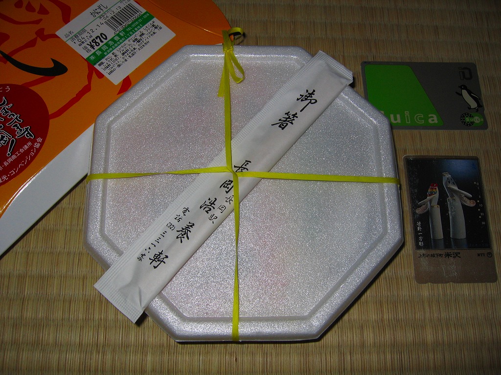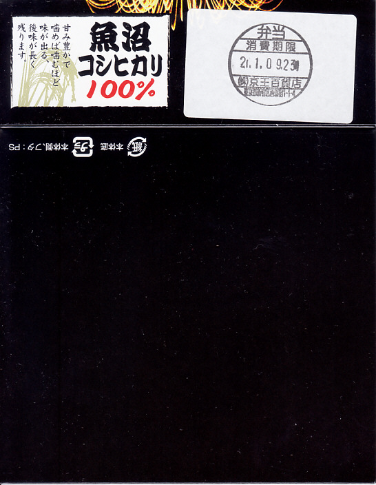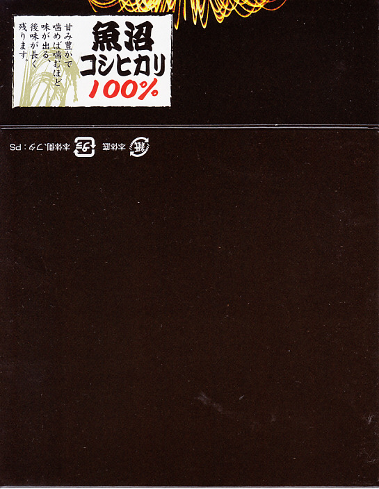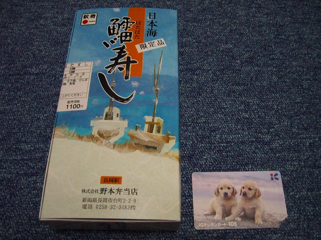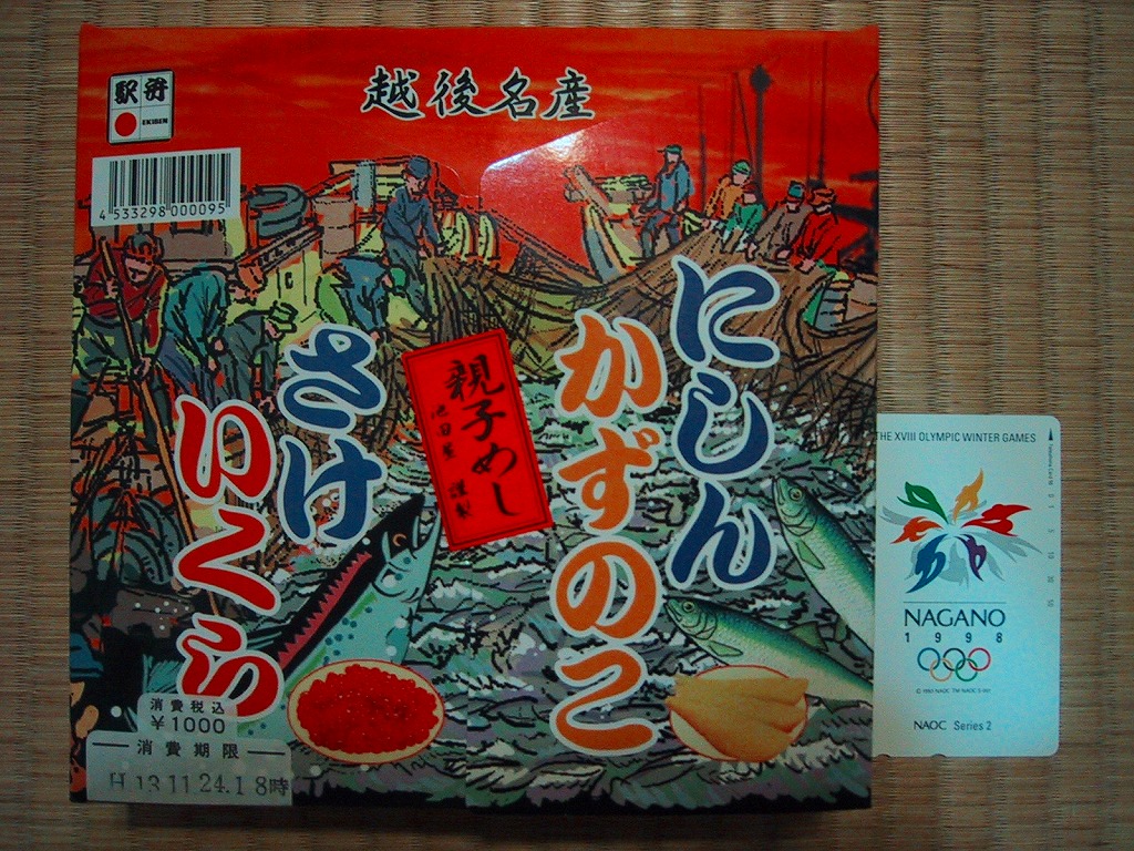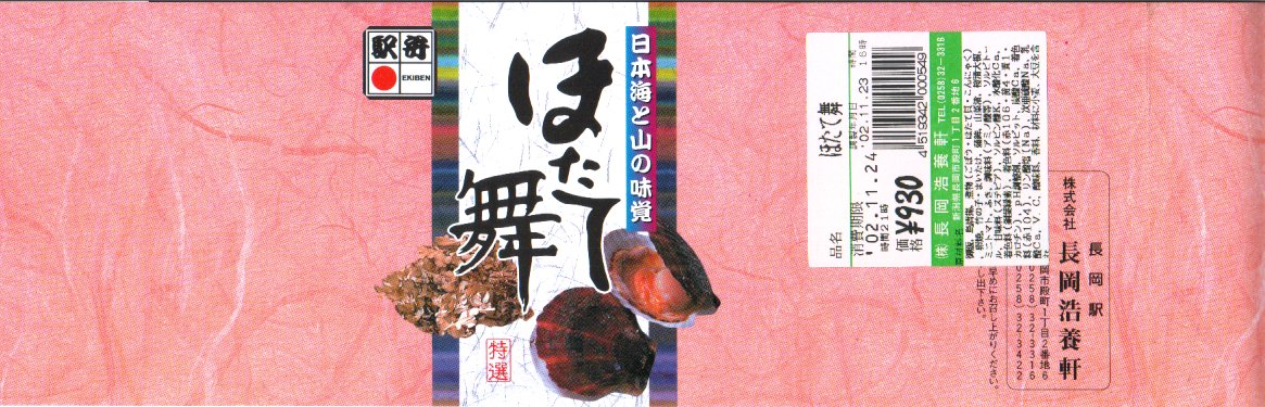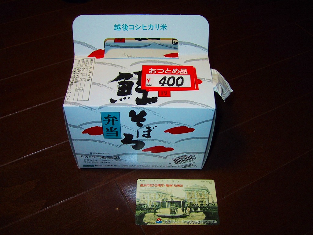 法令の強化で大きくなった食品表示ラベルに負けない巨大さで「がんばろう長岡!がんばろう中越!」のシールが貼られる。2004年10月の新潟県中越地震に伴う連日の地震報道で、観光客など新潟県への訪問者は激減しているそうで、被災地以外では政官財界挙げて宣伝に励んでいる。しかしこの駅弁は、2009年6月の調製元の事業停止により失われた。