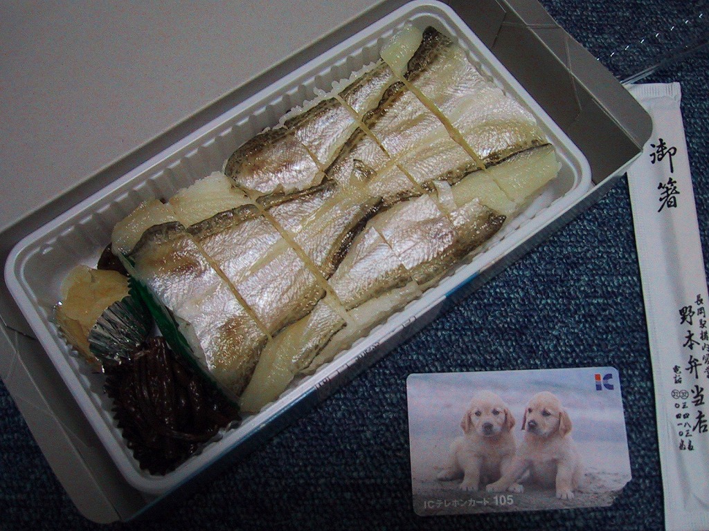 ハタハタ鮨は、300年の伝統を持つ出羽の国の名産品。酢飯の酢がきつく、ハタハタの身が固く感じたがもともとこういうものか。乱獲による漁獲高減少で、この駅弁の価格のようにすっかり高級魚の扱いとなった。