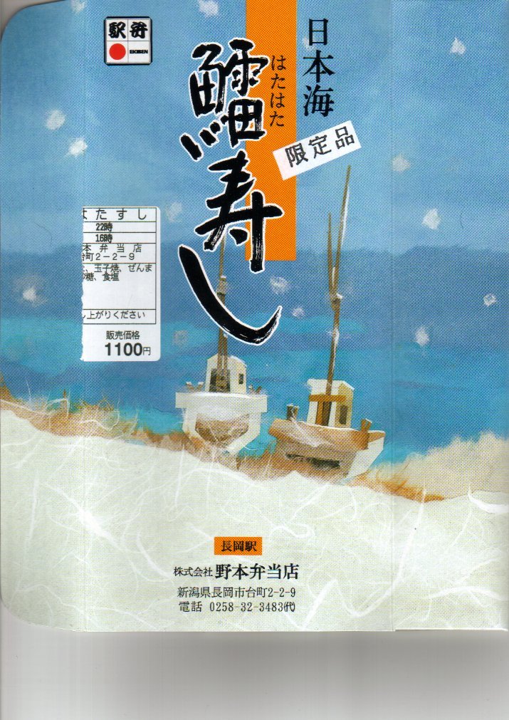 ハタハタは秋田県の魚という印象があるが、新潟県の長岡駅で駅弁になった。ボール紙の容器に薄いプラ製のトレーが入り、酢飯にハタハタの身を載せて押した押し寿司を6分割したものが付け合わせとともに収まる。調製元が2004年の新潟県中越地震の影響で休業の後に廃業したらしく、この駅弁は現在は入手できない。