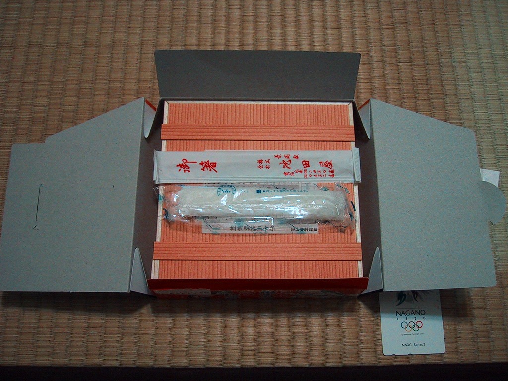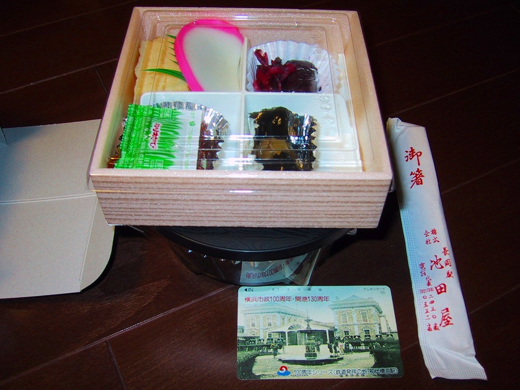 2000(平成12)年9月10日10時の調製と思われる、昔の長岡駅弁の紙箱。越後湯沢駅、または上越新幹線の車内販売で購入したと思う。駅弁の名前の「市松」とは市松模様のことだろうか、パッケージにそれがなく中身の写真がないので、確かめられない。