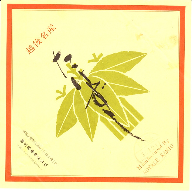1970年代の、1月12日11時の調製と思われる、昔の新津駅弁の掛紙。「たけずし」という駅弁が新津駅や新潟駅にあったかどうか。鉄道に関する記述もないため、新津駅の駅弁屋が販売した、「数の子ずし」などと同じ竹の容器を使う、持ち帰りか仕出しのお弁当などではないだろうか。調製元のホームページによると、「ローヤルかみお」は1969年に設立し1971年に廃止したとするが、この名を記載した駅弁の掛紙は、もう少し長い期間出回ったのではないかと思う。