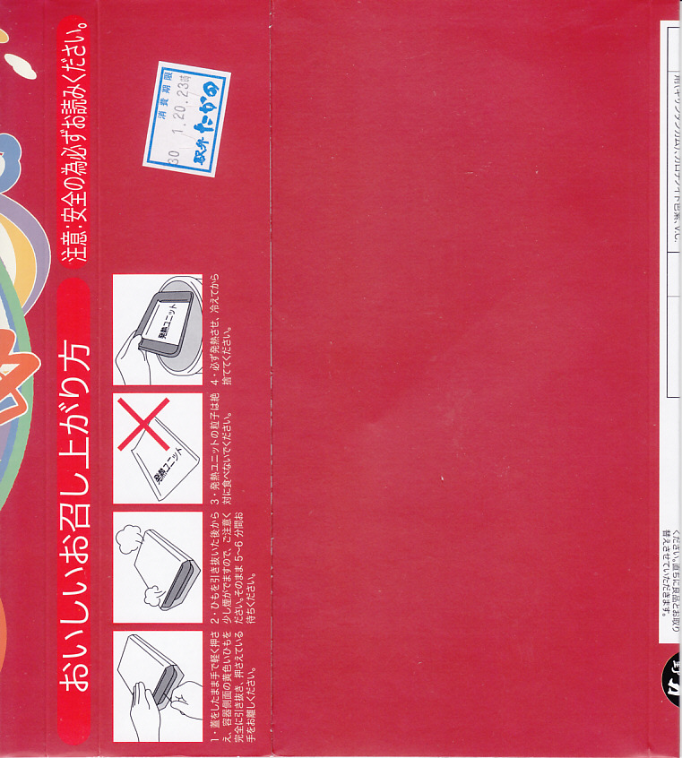 入手状況から1994(平成6)年2月13日11時の調製と思われる、昔の加賀温泉駅弁のパッケージの一部。上記の9年後と、おおむね変わらない。