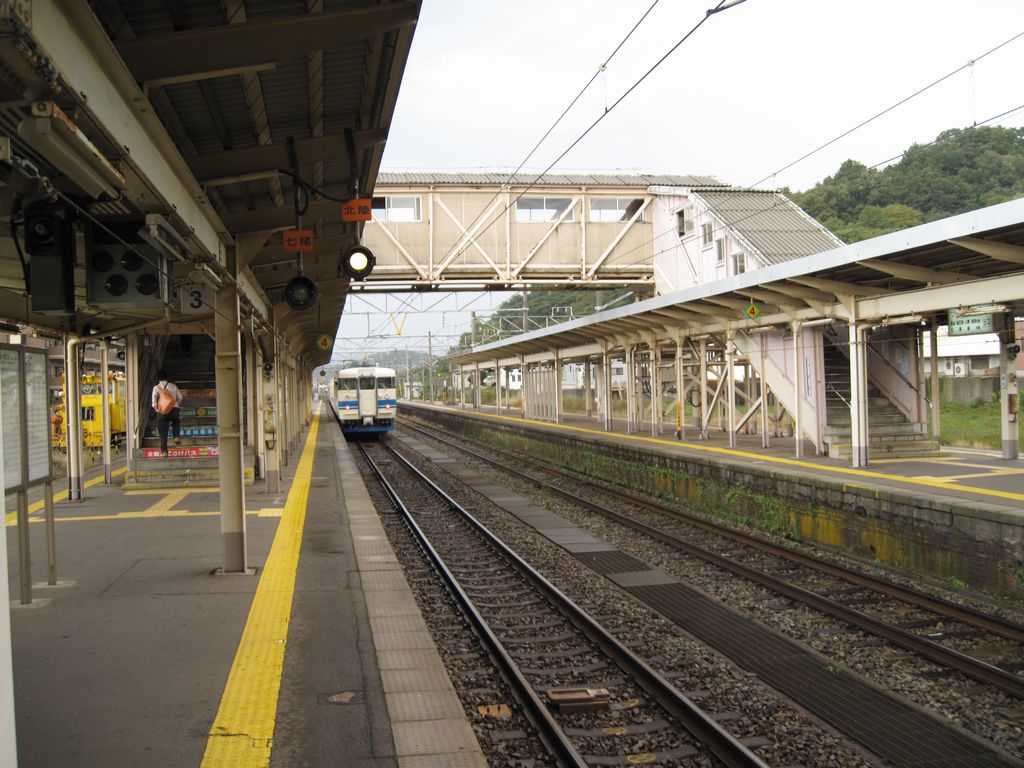 金沢駅から普通列車で3駅12分。JR北陸本線を2015(平成27)年3月に転換したIRいしかわ鉄道が、JR七尾線を分ける駅。駅弁は2000年頃までに失われ、かつては立売が実施されていた百年の歴史を刻む鉄道銘菓「きびあんころ」も、2017(平成29)年に駅からは失われた。1898(明治31)年11月1日開業、石川県河北郡津幡町字南中条。