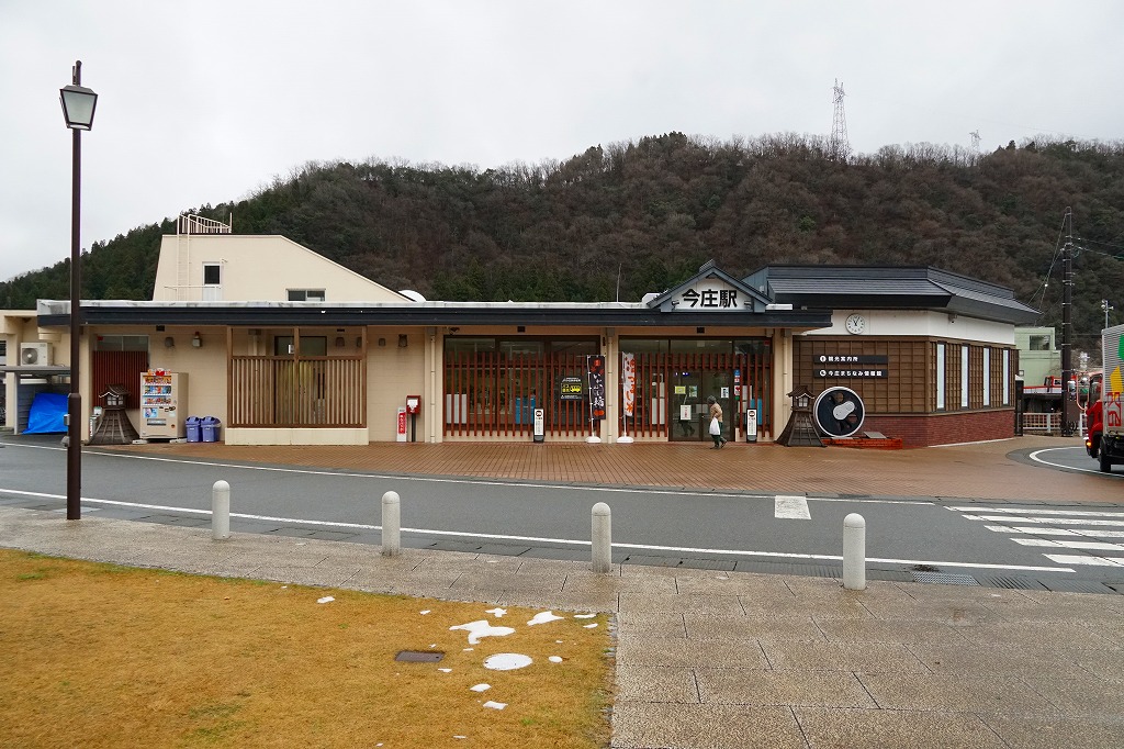 福井駅から普通列車で40分前後。南越前町は2005年1月に今庄町と南条町と河野村が合併してできた、人口約1万人の宿場町。今庄は江戸時代まで、現在の関西と北陸を隔てる峠道が3本も集まり、陸上交通の要衝として栄えた。明治時代に鉄道が開通すると、山中峠越えの機関車を付けたり外す鉄道の町となり、職員や旅客で賑わい栄え、駅弁が売られ、立ち食いそばが親しまれた。1962年6月の北陸トンネルの開通で、今は静かな山間の集落。1896(明治29)年7月15日開業、福井県南条郡南越前町今庄。