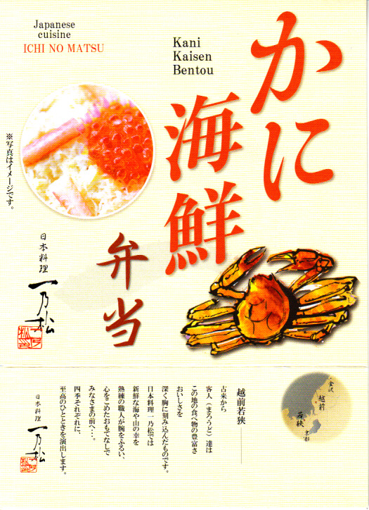 2007(平成19)年の秋頃に催事場で現れた、鯖江駅弁を名乗るおそらく史上初のお弁当。コンビニ軽食弁当並みに小柄な容器に透明なふたをして、商品名や中身と調製元の写真に催事屋製「駅弁の達人」マークや、「こだわり」「感動の」などの煽り文句を付けたボール紙の枠にはめる。