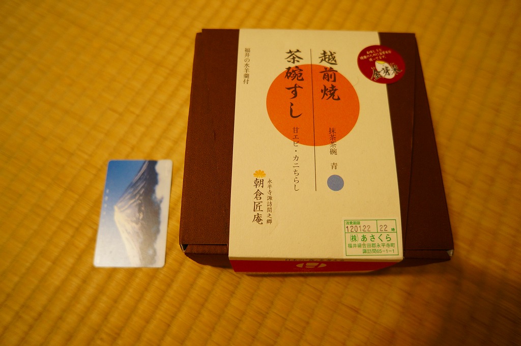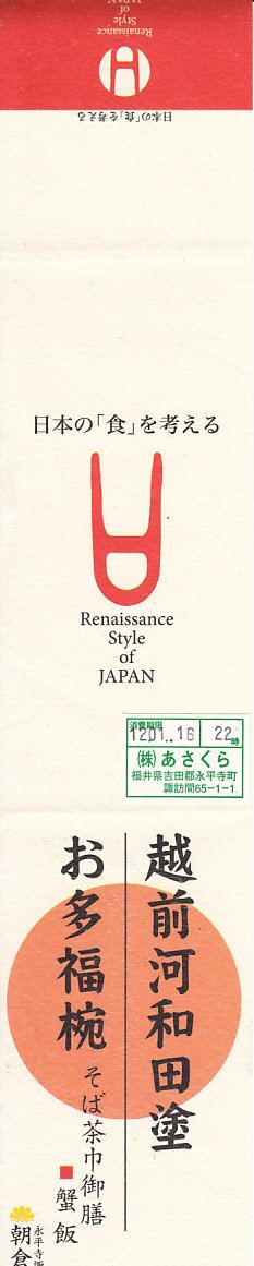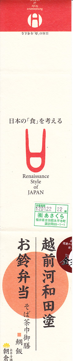 高価なりに味の不満はないが、これは本当に武生の駅弁なのだろうか。駅に行けば買えたのだろうか。プロデューサーが同じ「日本古窯弁当シリーズ」も駅で買えない疑義駅弁であったし、この商品も駅弁としての実態を疑わざるを得ない。速弁としての販売も、ほどなく終えた模様。
