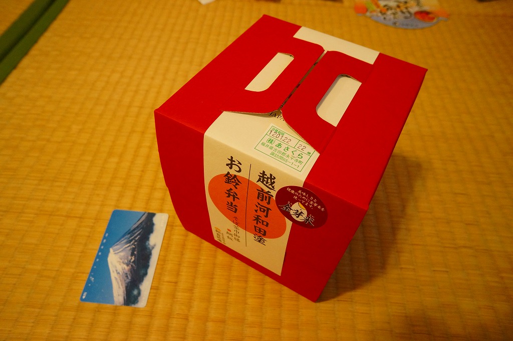 コンセプトと風味はかなりしっかりできていると思ったが、二千円の駅弁が商売になるような駅であれば、福井鉄道が鉄軌道部門の存続は難しいと2007年に沿線各自治体に支援を要請するような事態に陥らないと思う。ネット上の新聞記事では日曜限定で4日前までの予約販売と紹介されたが、続報は聞かないし福井鉄道の公式サイトでも無視されており、実物や収穫報告もここと同年の阪神百貨店の駅弁大会でしか聞かない。まあ、疑義駅弁だろう。