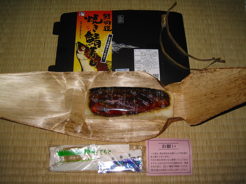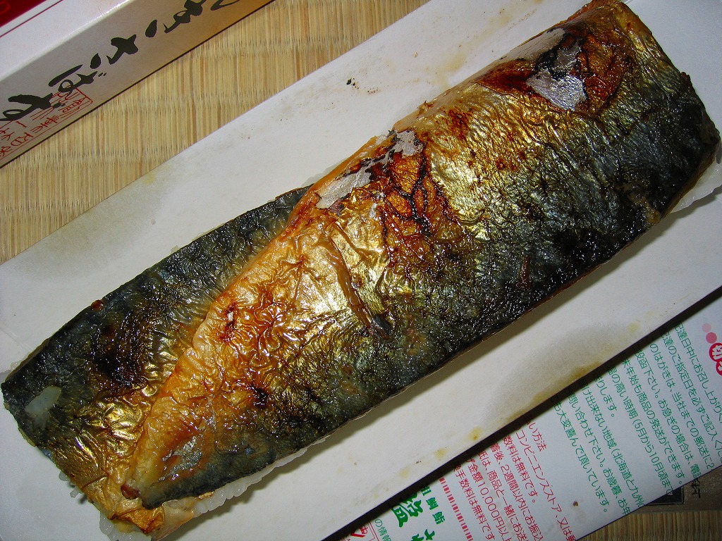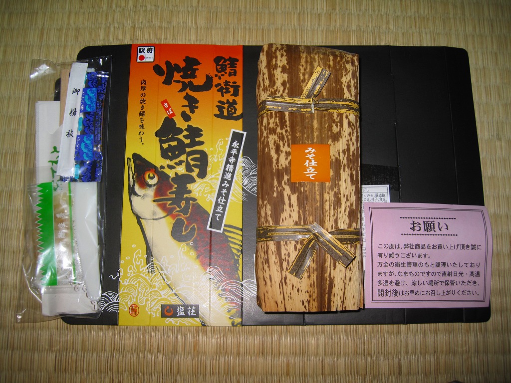 味は空弁や同種の駅弁と同等なものの、ナイフで切ると焼鯖の身が崩れてこぼれ落ちるので車内では食べにくく、ガリがえらく大量に挟み込まれていて、鯖の風味を邪魔する気がしないでもない。この駅では焼きではない鯖ずしのほうが美味いと思う。価格は2004年の購入時で800円、2019年時点で1,050円、2020年時点で1,080円。