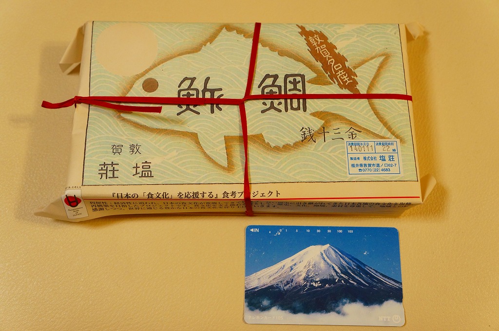 2004年7月26日に購入した、敦賀駅弁のボール紙製パッケージ。容器と中身と味は2013年のものと同じで、パッケージの絵柄が異なる。