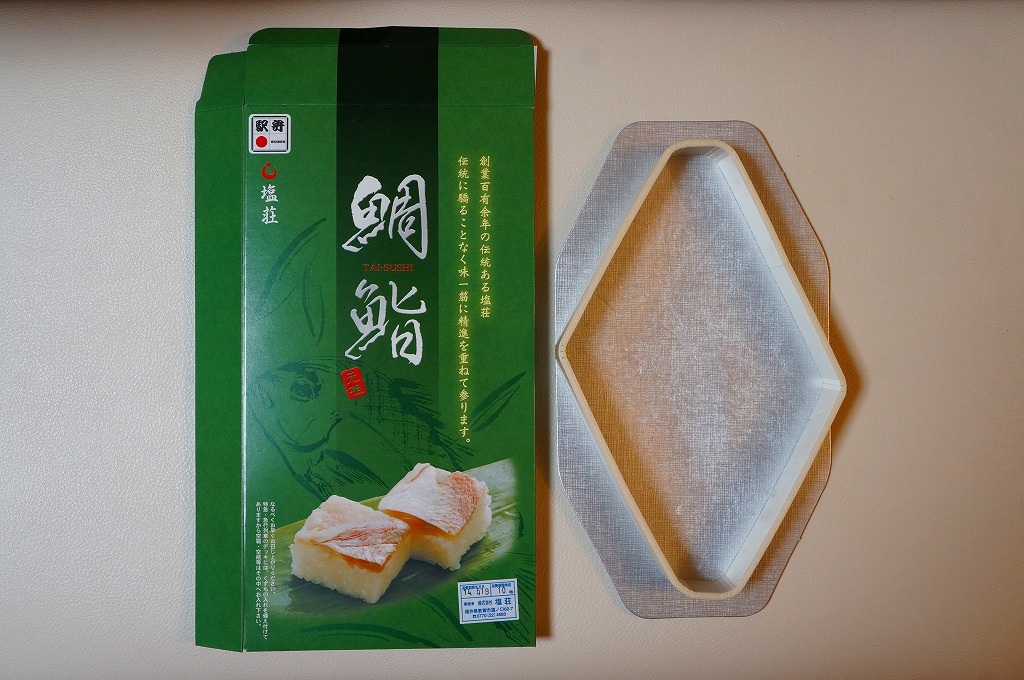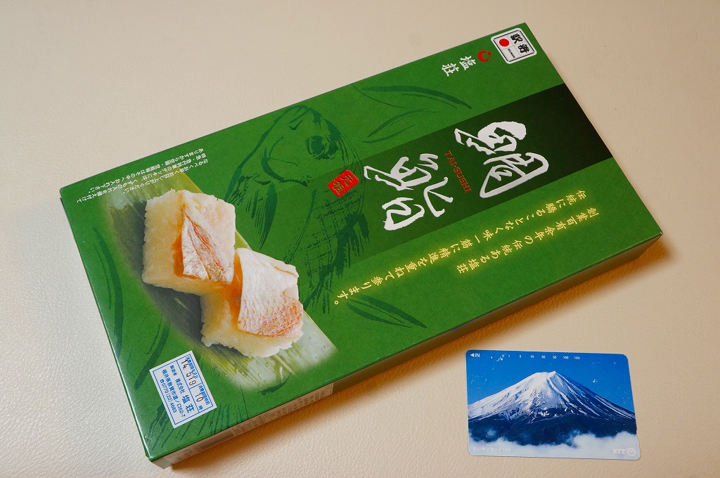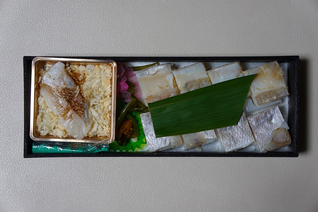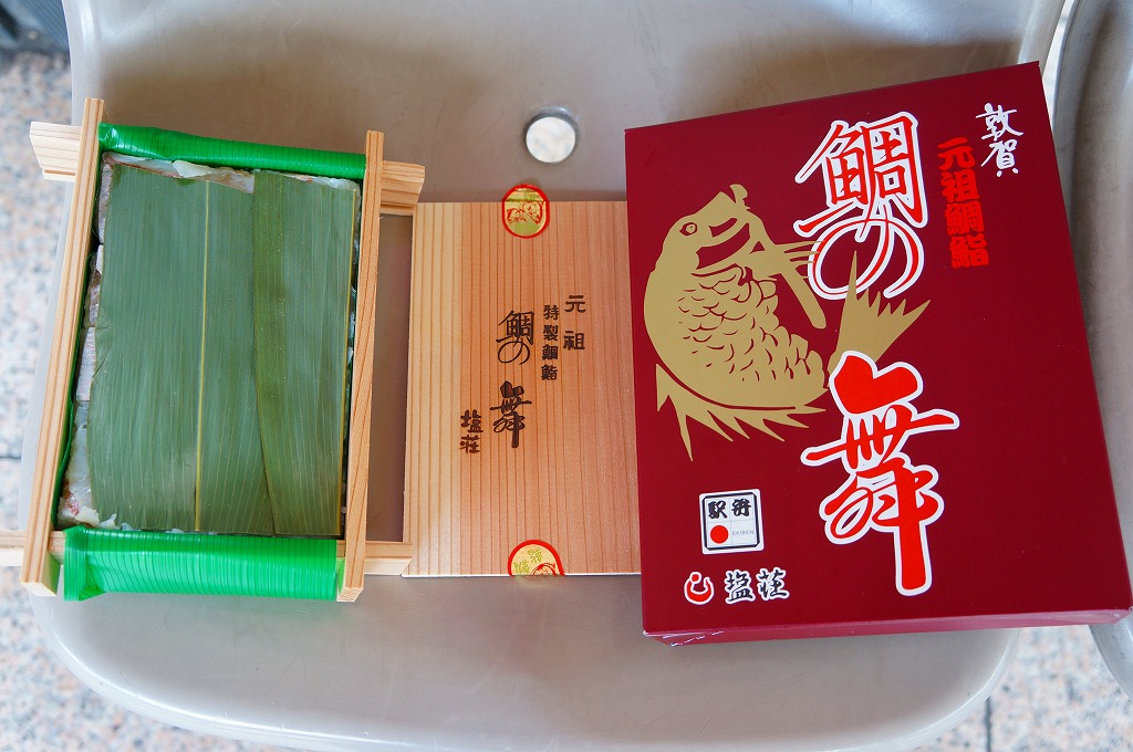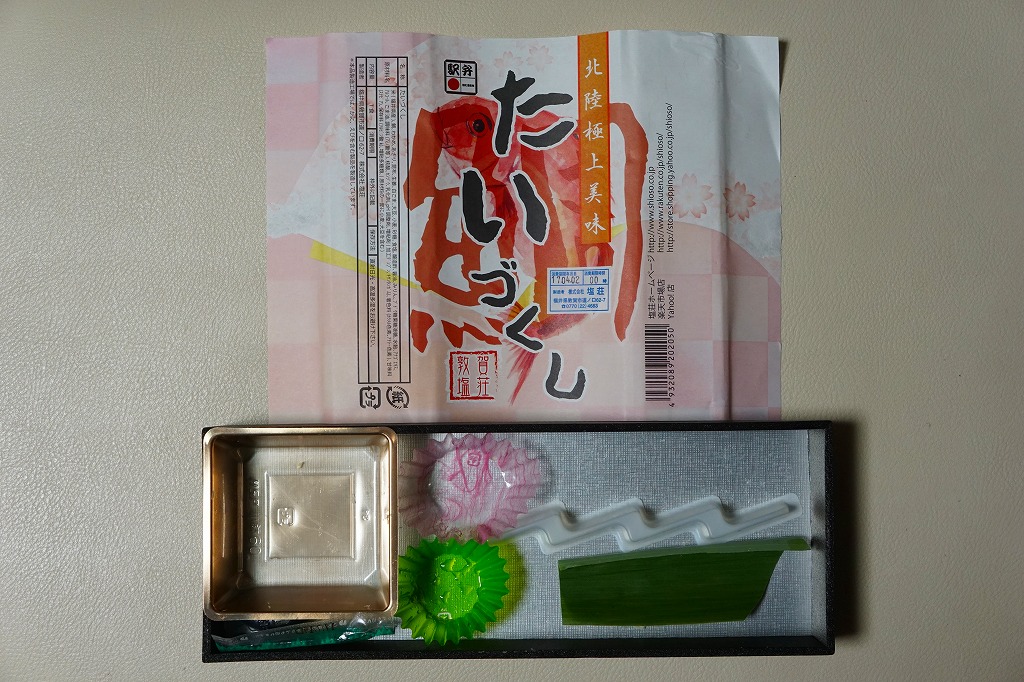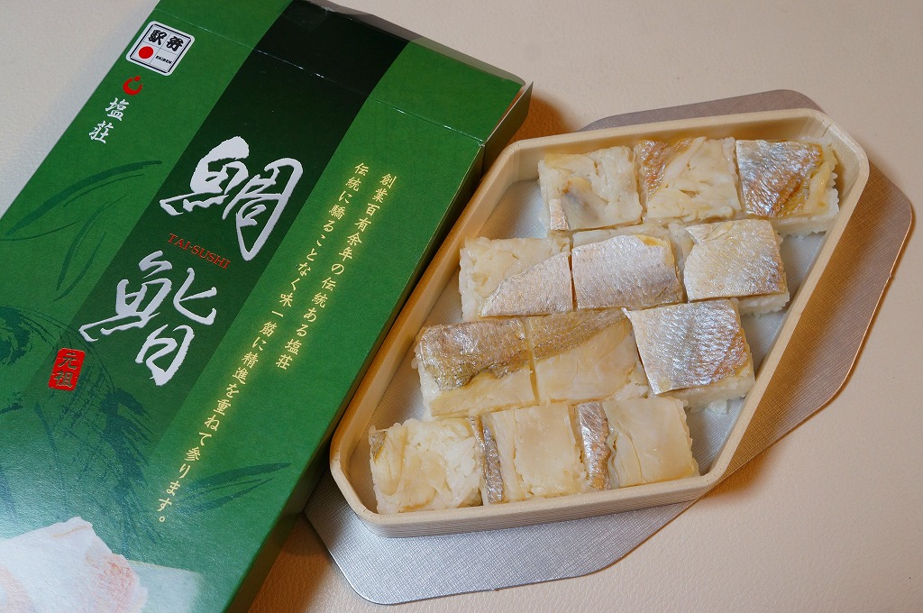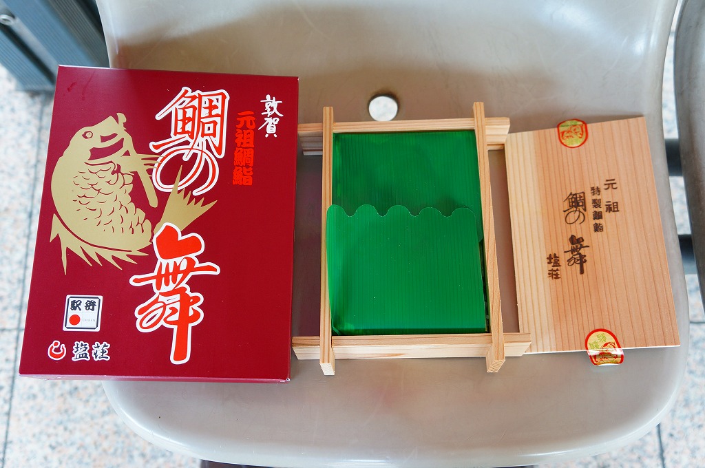 2016(平成28)年9月に「ますづくし」とともに、北陸自動車道や名神高速道路のサービスエリアで発売。12月頃から東京駅や駅弁催事に顔を出すようになった模様。中身はタイ押寿司とタイ飯のセット。立方体の押寿司はプラ製の仕切りトレーにより見栄え良く整列し、タイのフレークと切り身を乗せた御飯も正方形トレー内で美しく、アサリとコンブの和え物とワカメの酢の物を添付。味はいずれも淡く控えめで、少々の高級感を備えていた。2018年頃までの販売か。