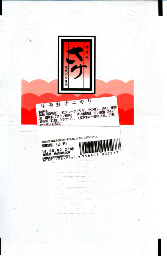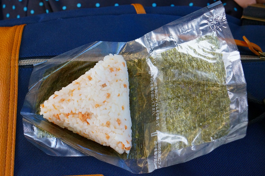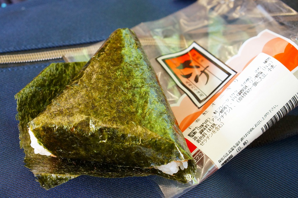 小淵沢駅の駅舎にて、駅弁屋が営業する立ち食いそば店で、売られるおにぎりのひとつ。商品名のとおり、御飯にさけフレークを混ぜた三角おむすびが1個、海苔を挟むフィルムに包まれる。コンビニ風おにぎりと同じように見えて、開いてめくって海苔に飯を置く、コンビニでは昭和の頃になくなったタイプの、昔懐かしいフィルム包装だった。ここの立ち食いそば店は、一日中賑わっているように見える。