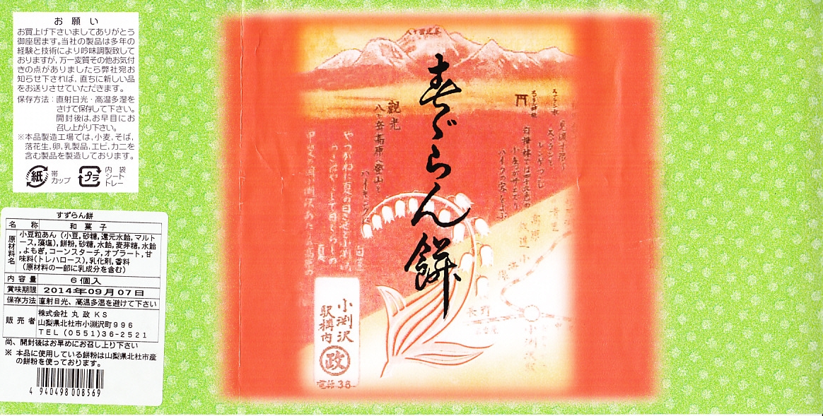 調製元の丸政は、1928(大正7)年9月に現在の中央本線富士見駅で開業。富士見駅は中央本線で最高所にある駅であり、当時は汽車が給水で一服し、すずらん餅が立ち売りされた。しかし給水の廃止で列車の停車時間が短くなったため、小海線の分岐駅となった小淵沢駅に、1929(昭和4)年6月に移転したという。つまりこのすずらん餅は、峠の力餅のようなものであった。今も富士見駅には丸政の立ち食いそば店がある。