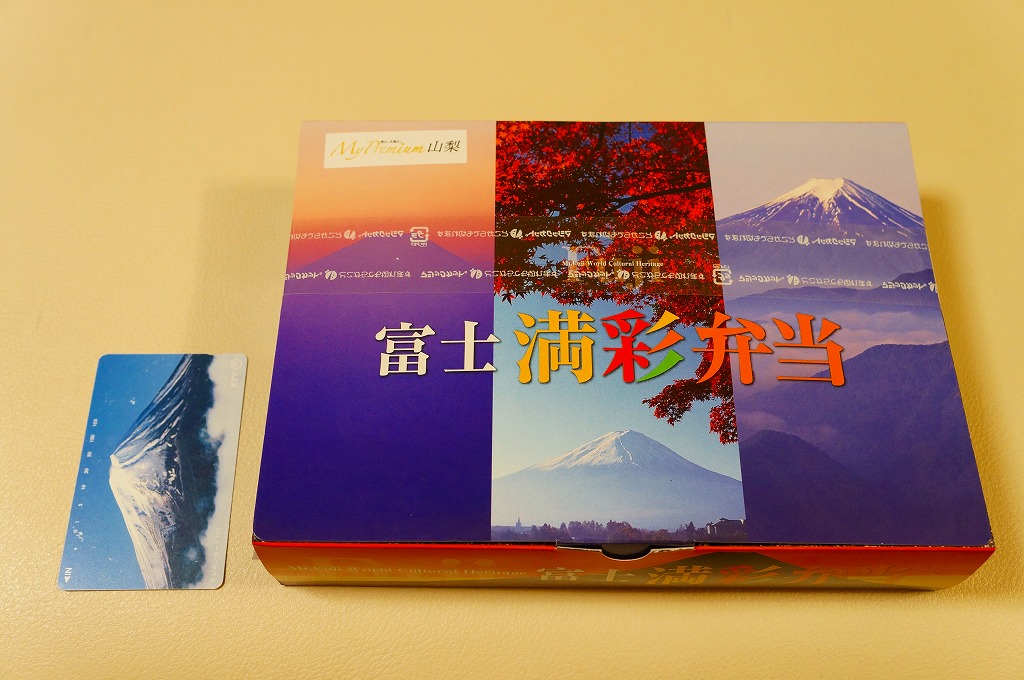 2013(平成25)年9月から11月まで実施する、公益社団法人やまなし観光推進機構とJR東日本八王子支社との観光キャンペーン「My Premium 山梨 空に、大地に。」の一環で、同年9月1日から11月30日まで小淵沢駅と甲府駅で販売。パッケージの英文から、ユネスコによる2013年6月の世界文化遺産への登録も意識していることが分かる。