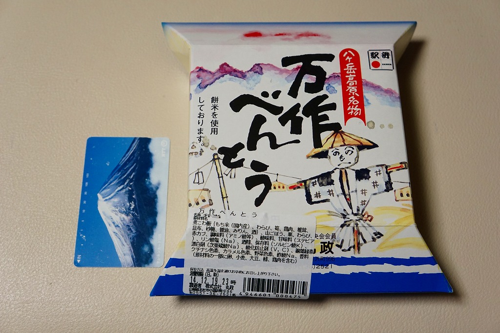 新宿駅から中央本線の特急列車で約2時間。北杜市(ほくとし)は山梨県の北西端を占める、人口約4万人の市。甲斐駒ヶ岳や八ヶ岳や金峰山や茅ヶ岳に囲まれた高原に、農地が広がり、山や緑に観光客が来る。駅弁は大正時代から売られ、平成時代に売店へ「小淵沢駅の名物は駅弁です」と掲示するほどの名物となった。1904(明治37)年12月21日開業、山梨県北杜市小淵沢町。